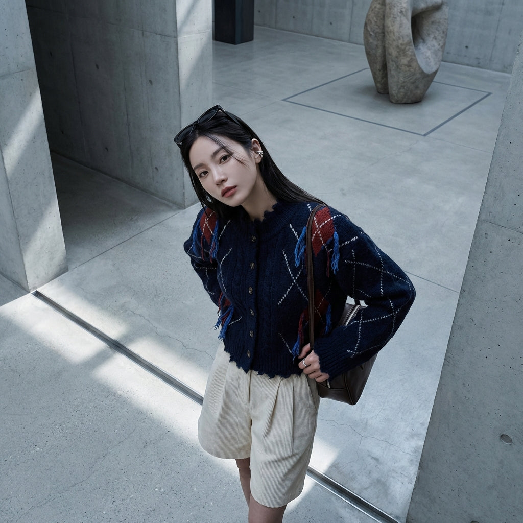 - Style: K-fashion, Casual, Oversize, Trendy. This cardigan embodies the relaxed and stylish aesthetic of Korean fashion, with a modern touch.