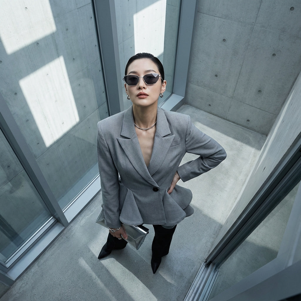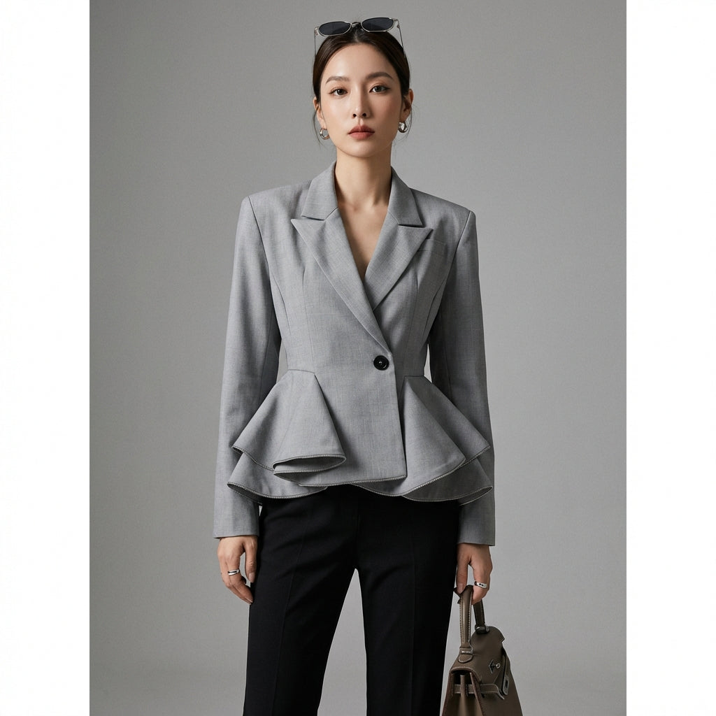 Blazer gris élégant avec volants pour femme - K-fashion