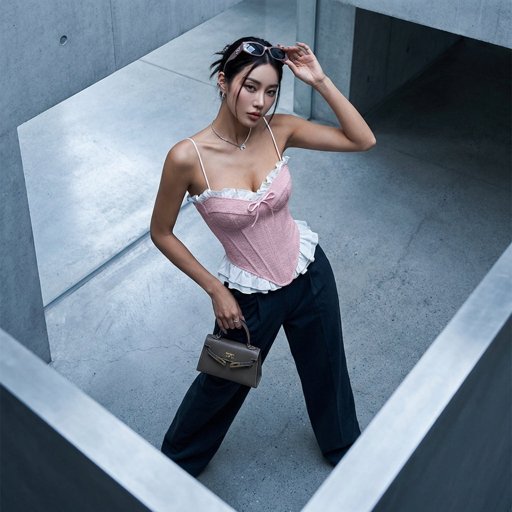- Style: Korean fashion, Trendy, K-fashion, Streetwear. This crop top embodies the modern and bold aesthetic of Korean fashion, perfect for a confident look.