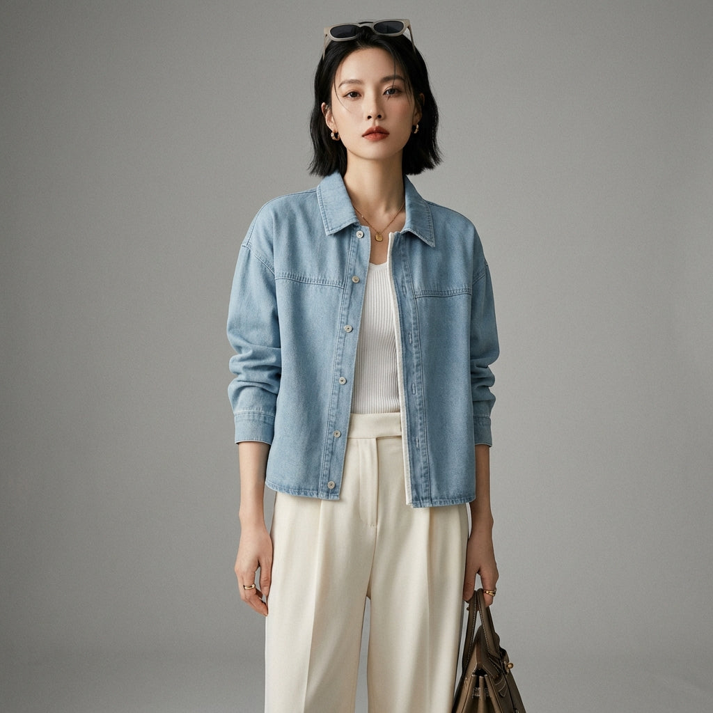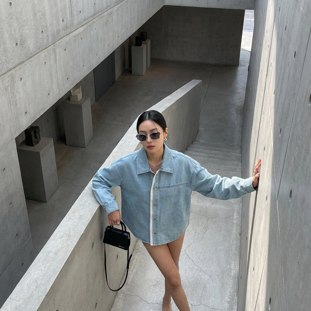 Tämä denim-paitatakki on ehdoton hankinta niille, jotka etsivät helppokäyttöistä vaatetta, joka yhdistää mukavuuden ja korealaisesta muodista inspiroituneen urbaanin tyylin.