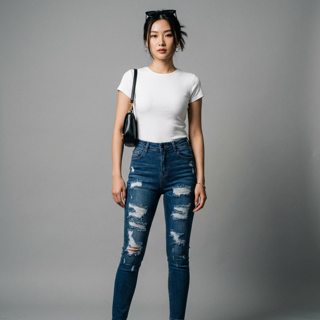 Korosta tyyliäsi korkeavyötäröisillä slim fit -farkuillamme, jotka ovat korealaisen muodin ehdoton klassikko. Niiden kulutettu design ja istuva leikkaus korostavat vartaloa, kun taas korkea vyötärö takaa optimaalisen mukavuuden. Täydelliset trendikkääseen ja rentoon arkityyliin! ✨