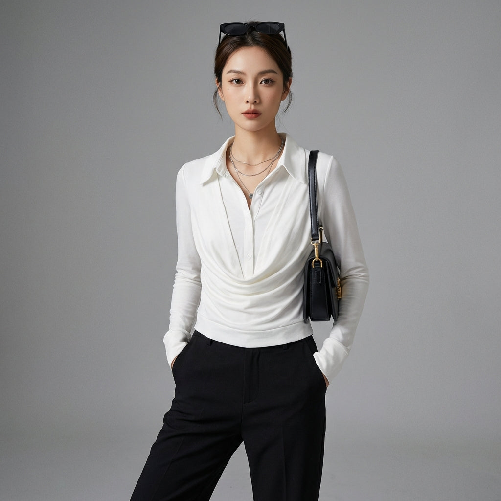 - Tyyli: Minimalistinen, tyylikäs, K-muoti. Tämä T-paita ilmentää korealaisten muodin hillittyä eleganssia ja puhtaita linjoja, täydellinen hienostuneeseen ja trendikkääseen lookiin.