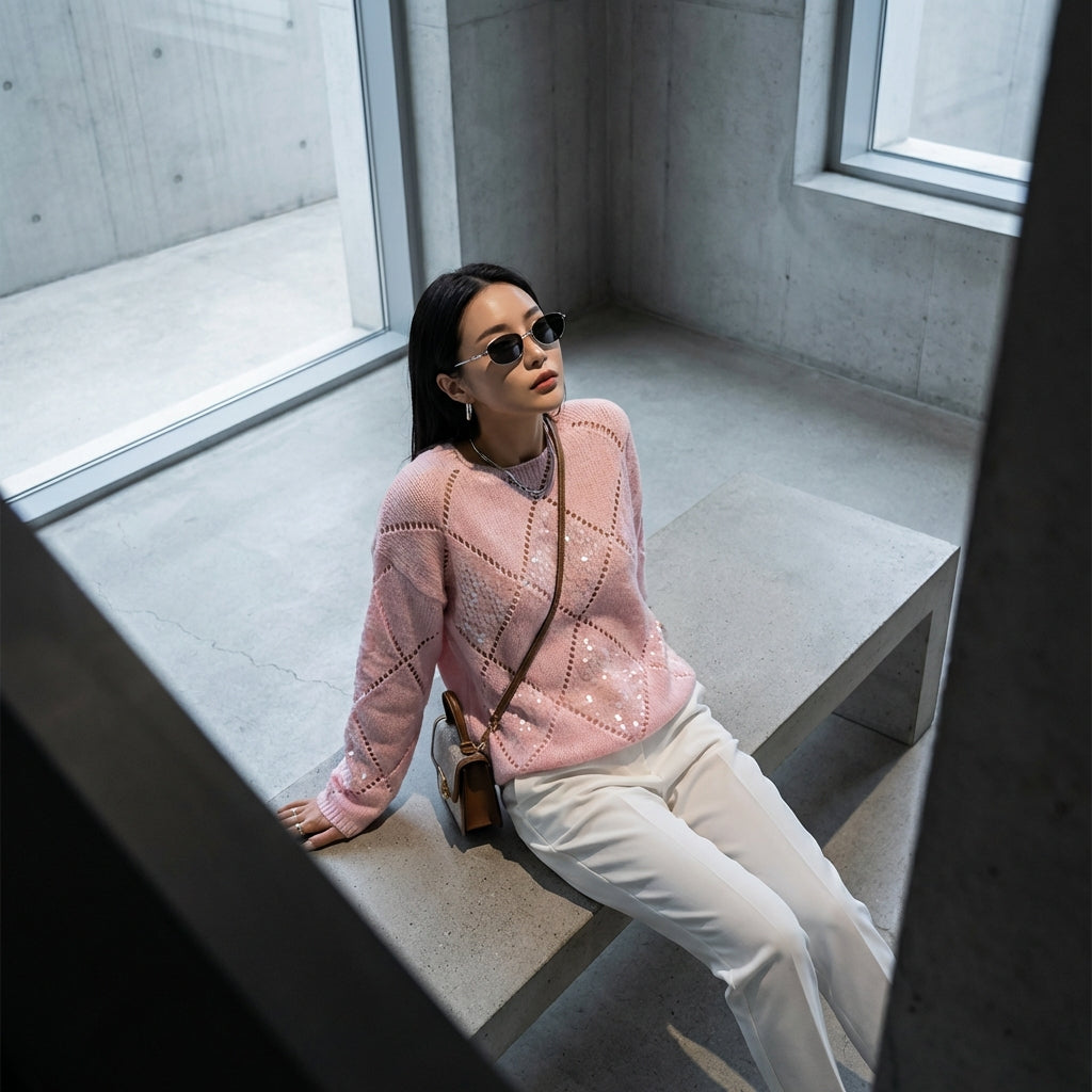 - Tyyli: K-muoti, Trendikäs, Rento chic, Ilta. Tämä neule ilmentää korealaista muodin modernia eleganssia ripauksella glamouria, ihanteellinen hienostuneeseen lookiin tai illanviettoon.