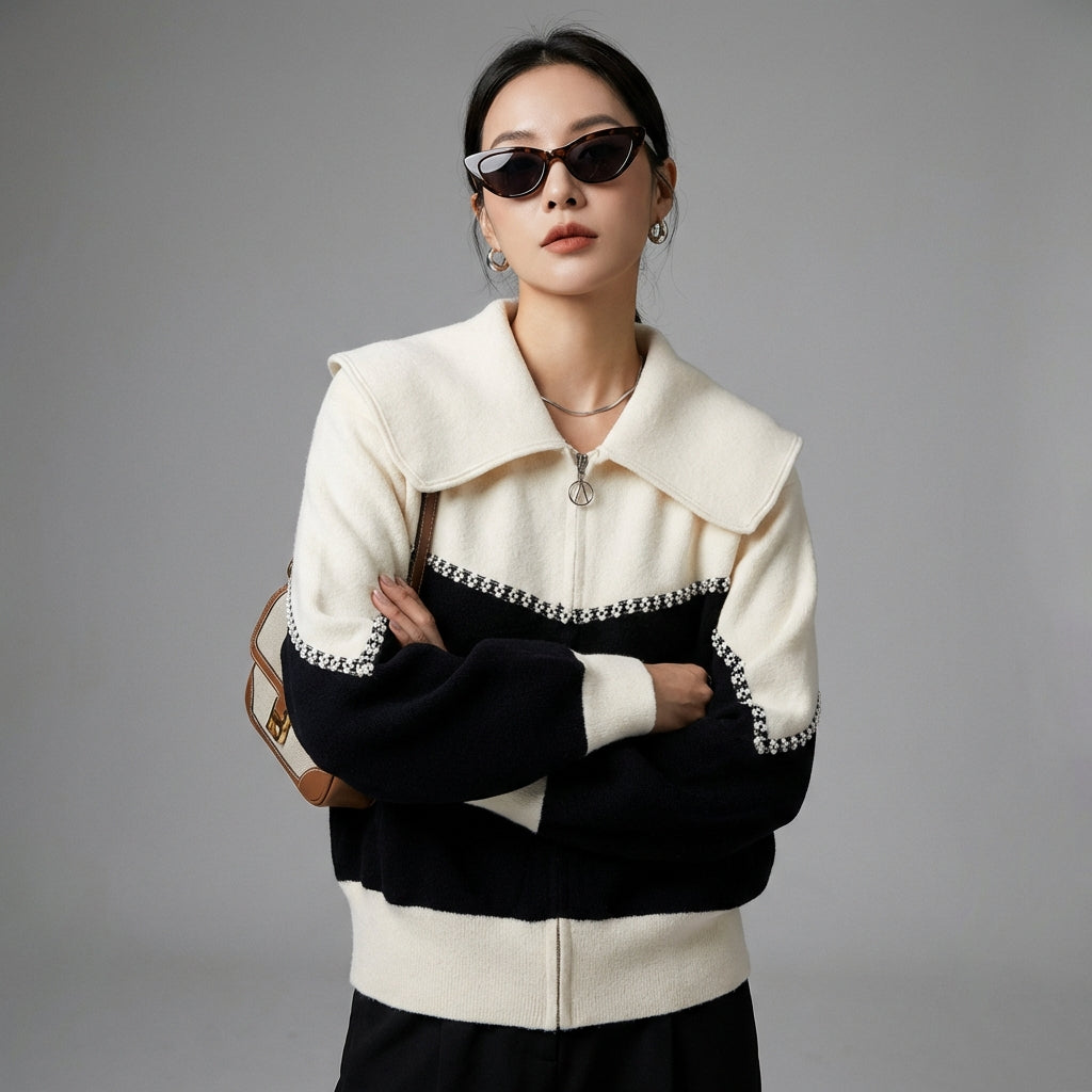 Omaksu rento ja trendikäs tyyli vetoketjullisella neuletakillamme, joka sopii täydellisesti kaikkiin tilaisuuksiin. Sen kaksivärinen muotoilu ja väljä leikkaus tekevät siitä modernin vaatekaapin välttämättömyyden! ✨