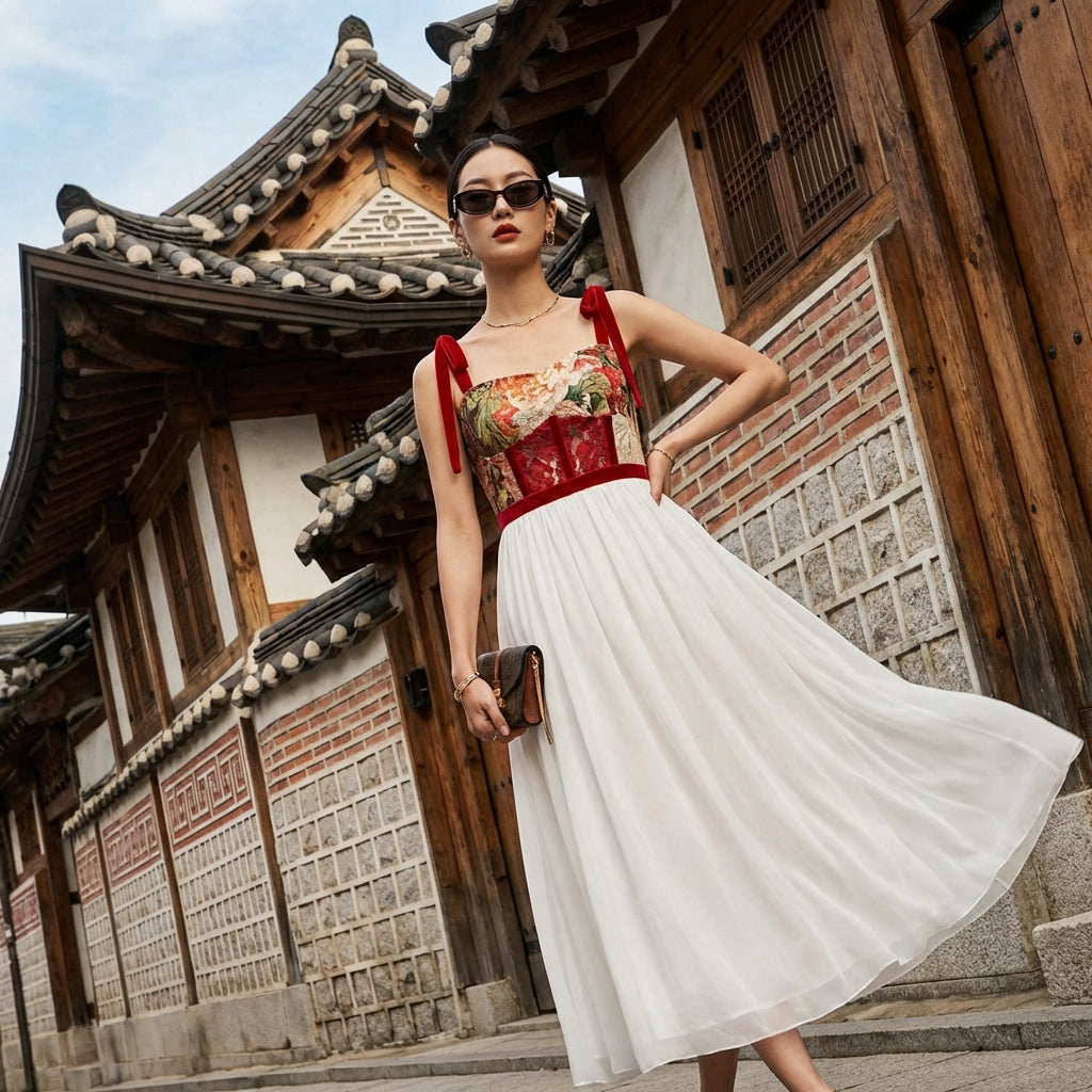 • Tyyli: Korealainen muoti, Tyylikäs, Trendikäs. Tämä mekko ilmentää modernia eleganssia ja korealaisen muodin hienostuneisuutta, täydellinen itsevarmalle tyylille.