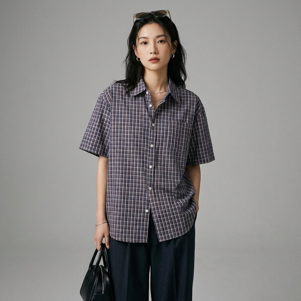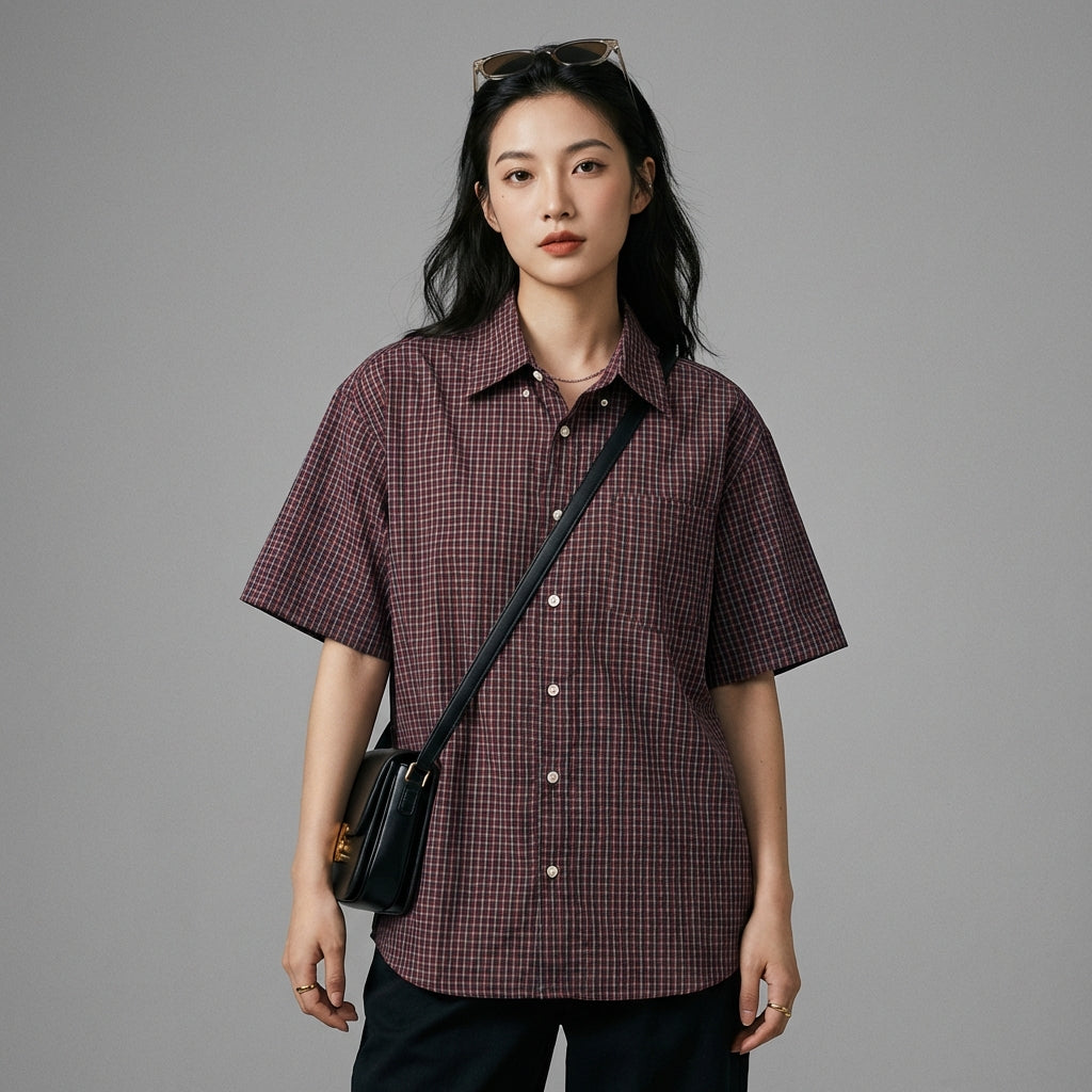 Chemise à carreaux oversize décontractée homme femme - Koreanxwear