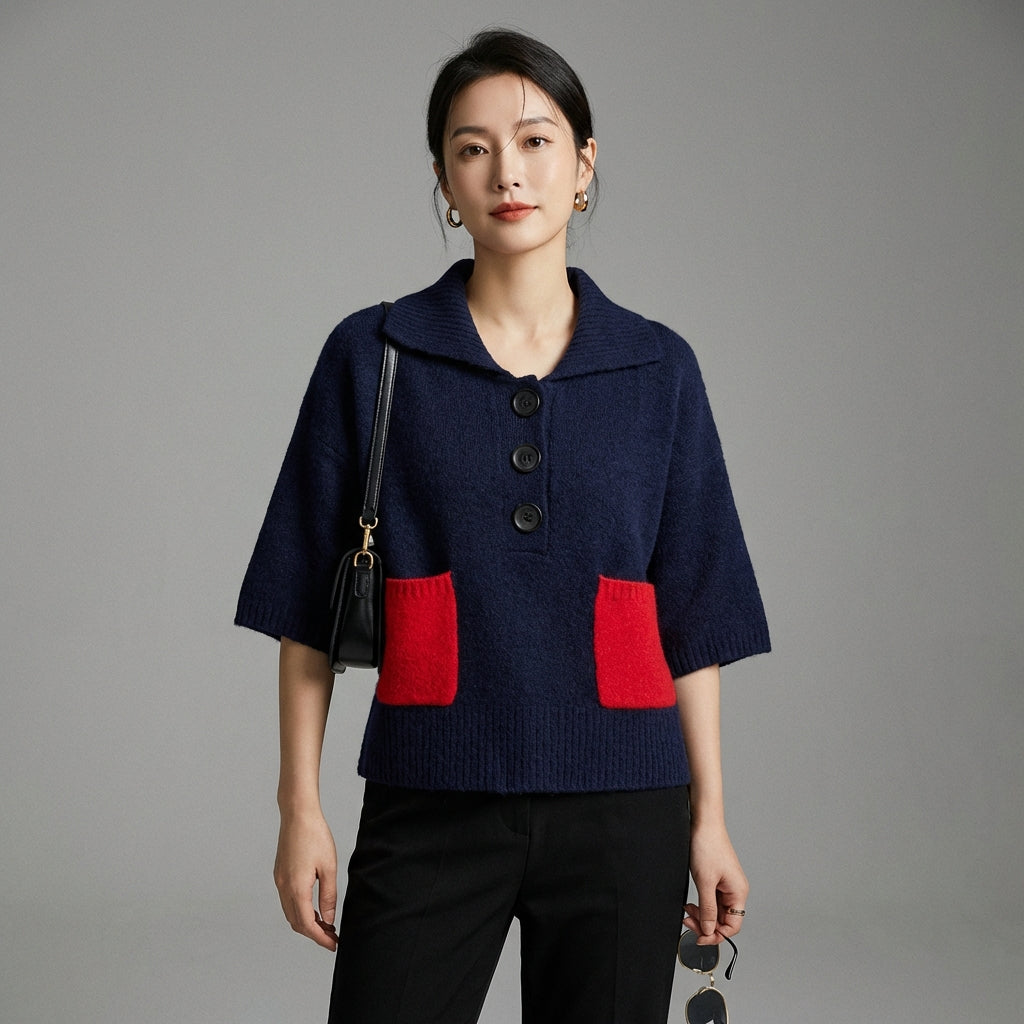 Omaksu tyylikäs ja rento look neulotulla poolokauluspuserollamme. Sen lyhyet hihat ja kontrastitasku tuovat ripauksen omaperäisyyttä, täydellinen moderniin ja mukavaan tyyliin! ✨