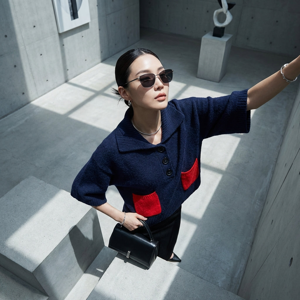 Tämä neulottu pusero on vaatekaapin kulmakivi, yhdistäen käytännöllisyyden ja tyylin ripauksella korealaista inspiraatiota.