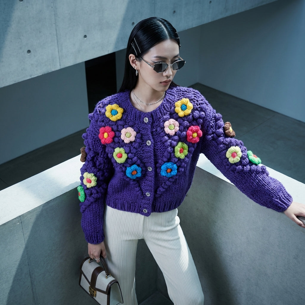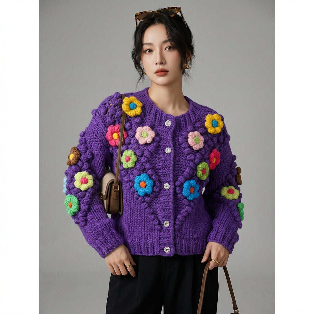 Luo pehmeä ja naisellinen ilme neulotulla villatakillamme, jota koristavat herkät kukat. Pyöreä kaula-aukko ja pitkät hihat tekevät siitä täydellisen vaatekappaleen, jolla pysyt tyylikkäänä ja mukavana joka tilanteessa! 🌸
