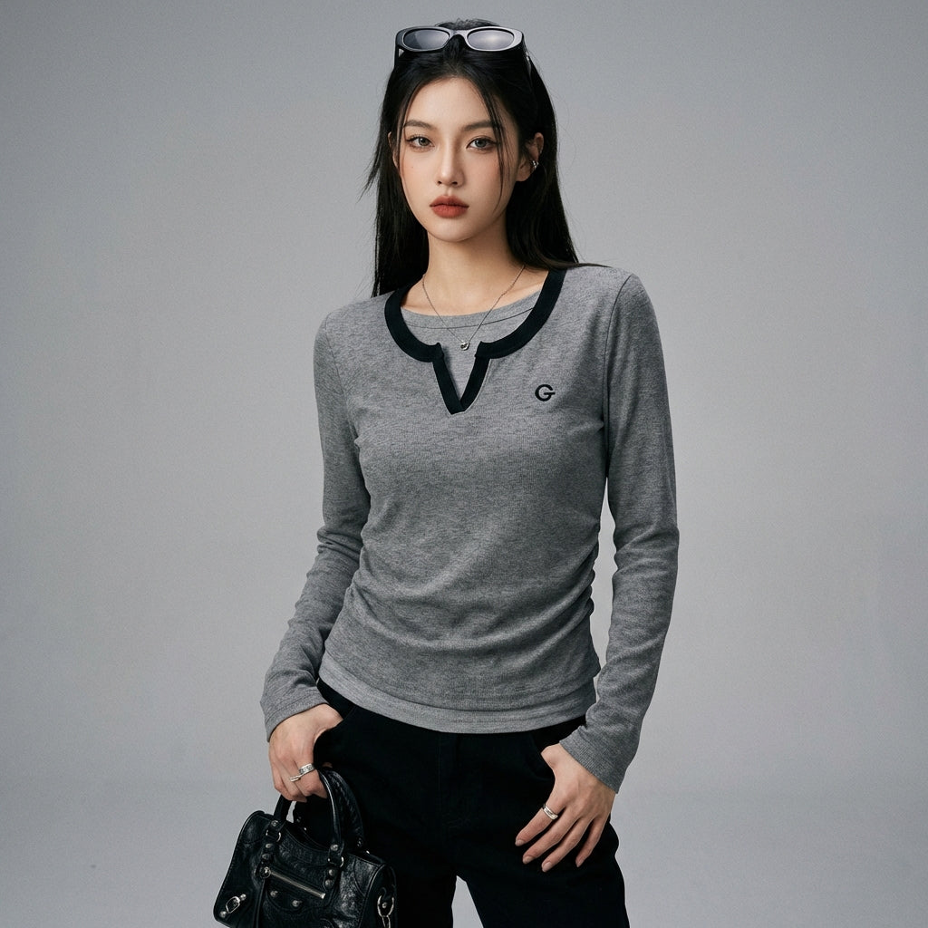 T-shirt bicolore mode coréenne gris et noir, coupe décontractée pour femme