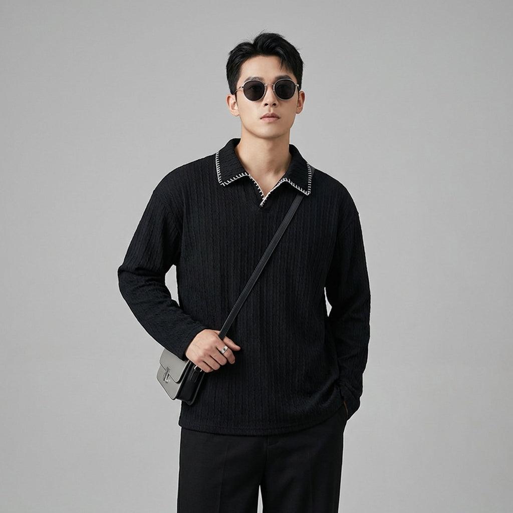 - Tyyppi: T-paita, väljä, käännekaulus. Moderni leikkaus ja erottuva kaulus luovat näyttävän ilmeen.