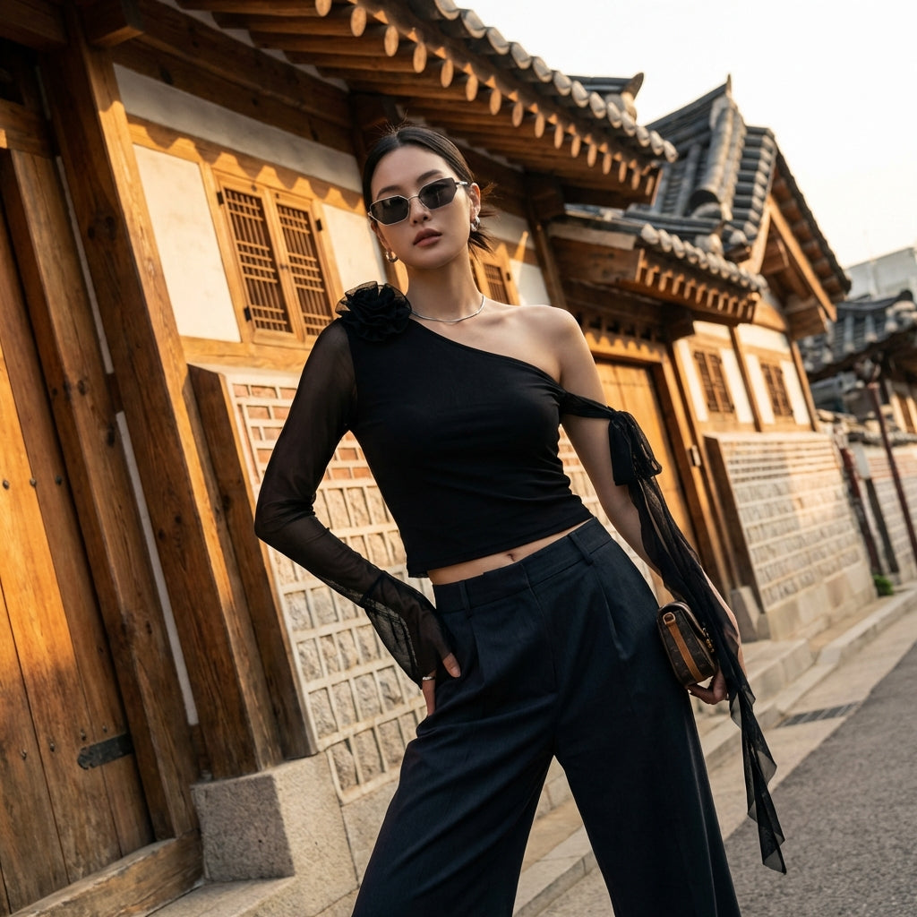 - Tyyli: K-muoti, Trendikäs, Urbaani. Tämä toppi ilmentää korealaisen muodin rohkeaa ja nykyaikaista henkeä, ihanteellinen niille, jotka haluavat erottua joukosta.