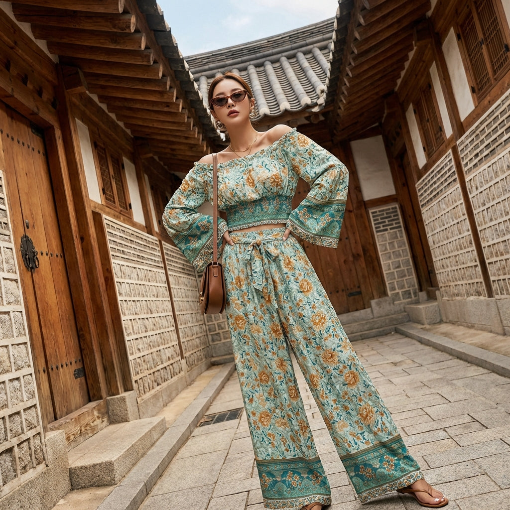 - शैली: विंटेज, कोरियाई, स्ट्रीटवियर, बोहेमियन। यह सेट विंटेज शैली की कालातीत सुंदरता को कोरियाई फैशन से प्रेरित एक कैज़ुअल स्पर्श के साथ जोड़ता है, जो एक शहरी और परिष्कृत लुक के लिए एकदम सही है।