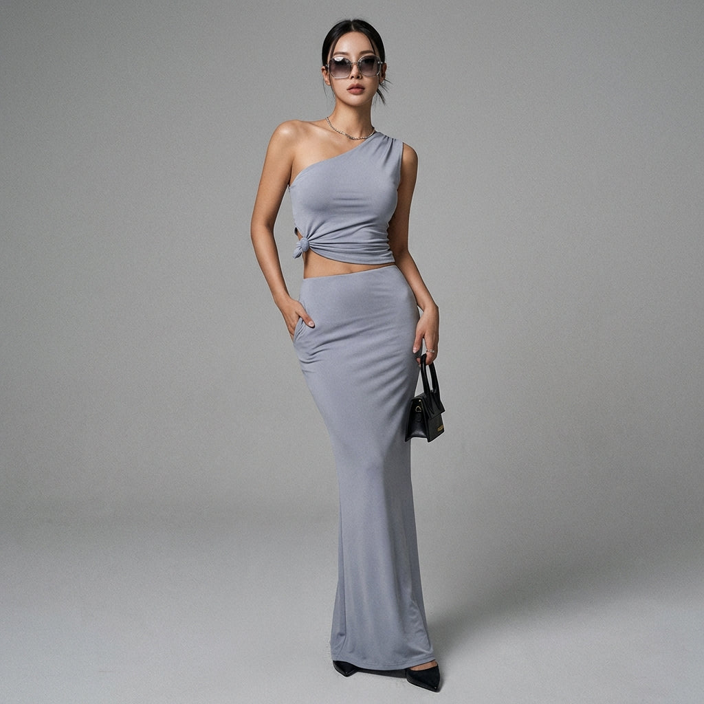 हमारे चिक सेट के साथ अपनी सुंदरता को निखारें, जिसमें एक फिटेड क्रॉप टॉप और एक स्लिम-फिटिंग लंबी स्कर्ट शामिल है। किसी भी अवसर पर एक परिष्कृत और आधुनिक लुक के लिए आदर्श! ✨