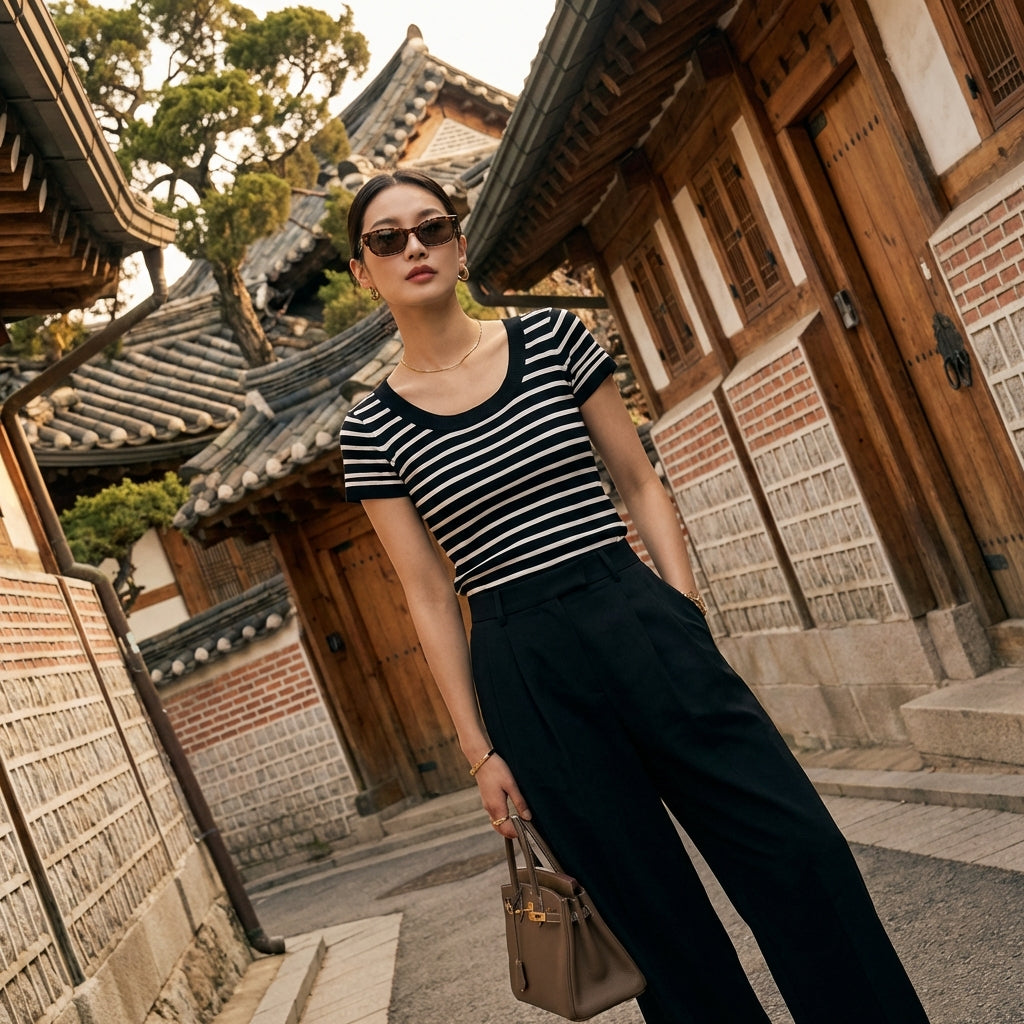 - शैली: के-फैशन, कैज़ुअल, अर्बन। यह टॉप आधुनिक कोरियाई शैली का प्रतीक है, जो रोज़मर्रा के लुक या दोस्तों के साथ बाहर जाने के लिए आदर्श है।