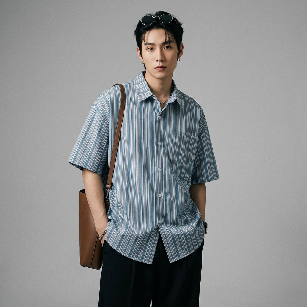 - शैली: स्ट्रीटवियर, मिनिमलिस्ट, ट्रेंडी। कोरियाई फैशन से प्रेरित, यह शर्ट सादगी और आधुनिकता को जोड़ती है।