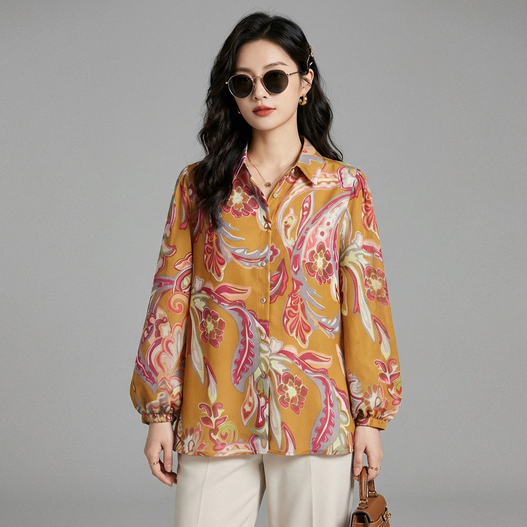 Chemise imprimée femme col rabattu manches longues - K-fashion