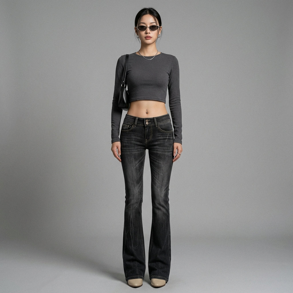 हमारे लो-वेस्ट जींस के साथ अपनी स्टाइल को व्यक्त करें, जो Y2K फैशन का एक ज़रूरी हिस्सा है। इसका स्लिम फिट और नैरो लेग्स आपकी आकृति को निखारते हैं, जबकि इसका काला रंग अधिकतम बहुमुखी प्रतिभा सुनिश्चित करता है। एक बोल्ड और ट्रेंडी लुक के लिए बिल्कुल सही! ✨