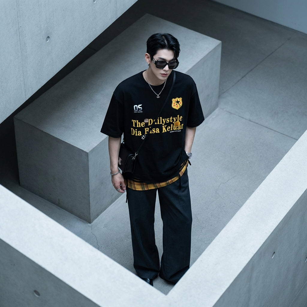 - शैली: स्ट्रीटवियर, के-फैशन, शहरी, ट्रेंडी। यह टी-शर्ट एक बोल्ड टच के साथ समकालीन कोरियाई फैशन की भावना को दर्शाती है।