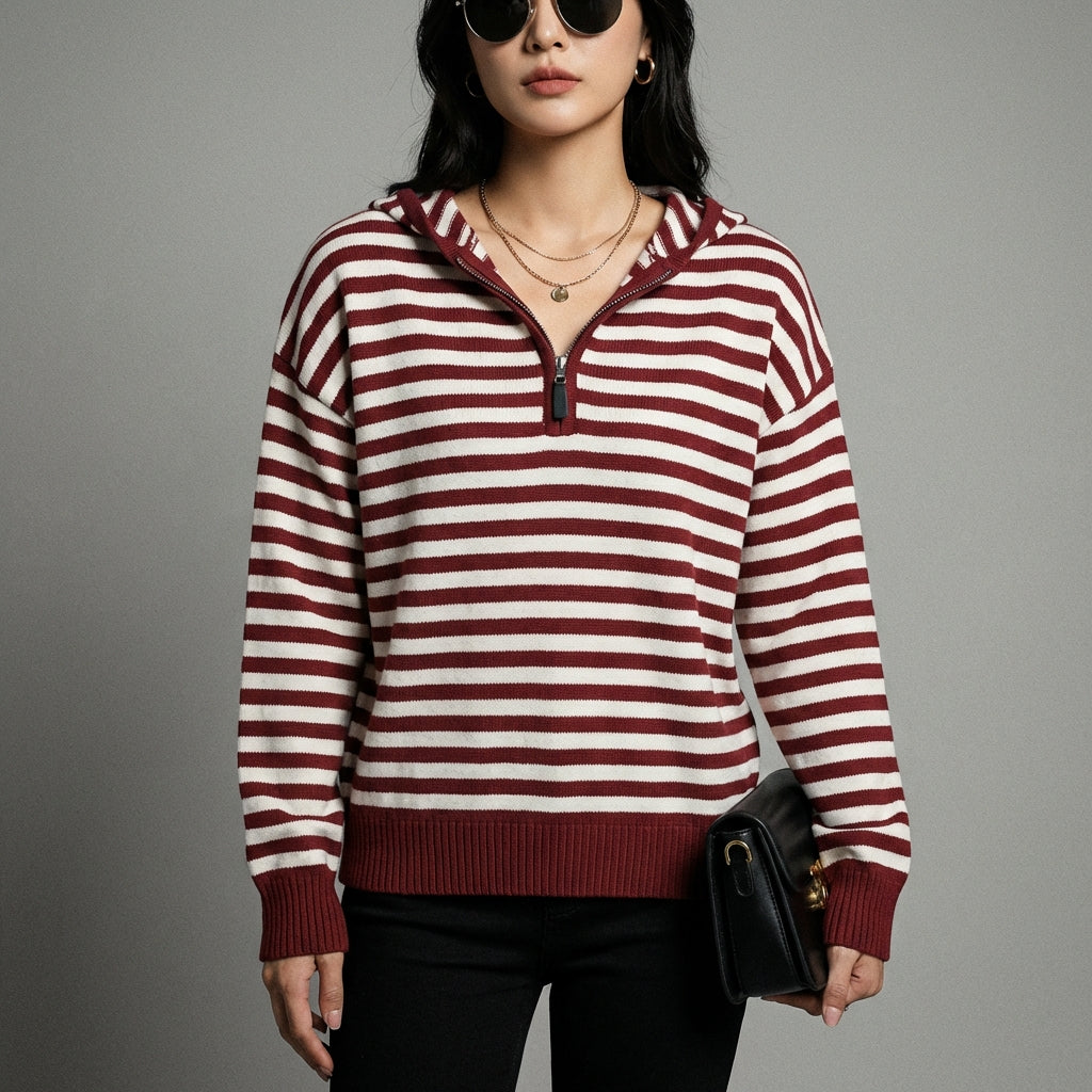 हमारे धारीदार हुड वाले कार्डिगन के साथ एक आरामदायक और स्टाइलिश लुक अपनाएं। इसका स्लिम फिट और आधुनिक डिज़ाइन इसे सभी अवसरों के लिए ज़रूरी बनाता है। अपने पहनावे में परिष्कार का स्पर्श जोड़ने के लिए बिल्कुल सही! 💫
