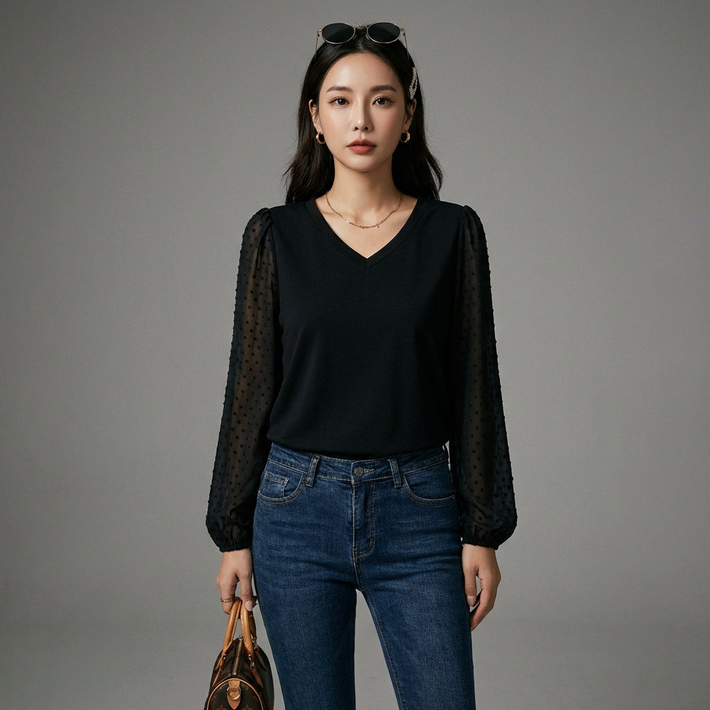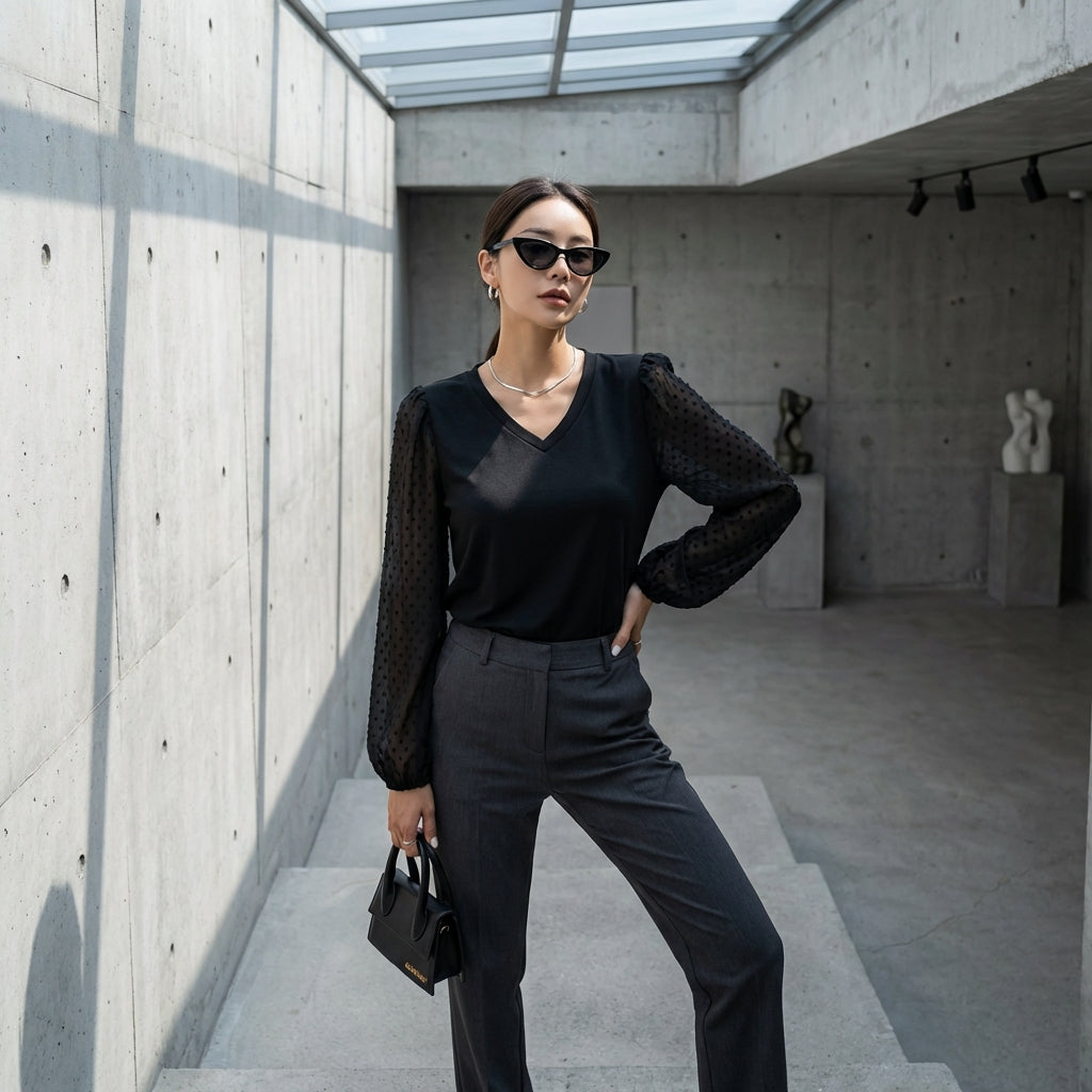 - शैली: न्यूनतम, ट्रेंडी, के-फैशन। यह टॉप कोरियाई प्रेरणा के स्पर्श के साथ वर्तमान फैशन की सूक्ष्म लालित्य और बहुमुखी प्रतिभा का प्रतीक है।