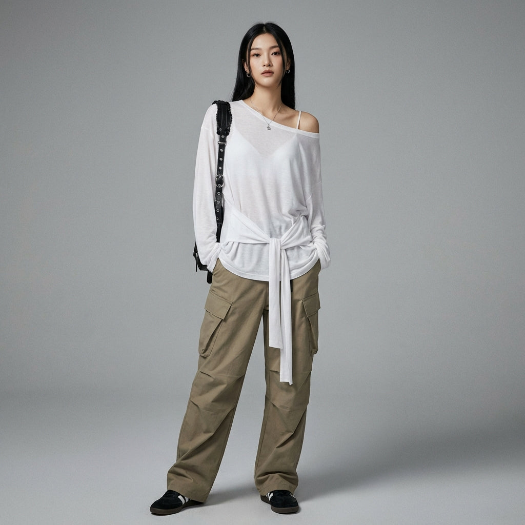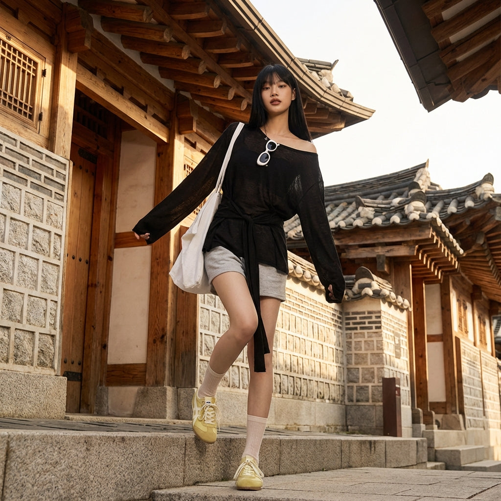 - शैली: कोरियाई फैशन, स्ट्रीटवियर, ट्रेंडी। यह टॉप के-फैशन की आरामदायक और चिक भावना को दर्शाता है, जो एक आधुनिक और मुखर लुक के लिए एकदम सही है।