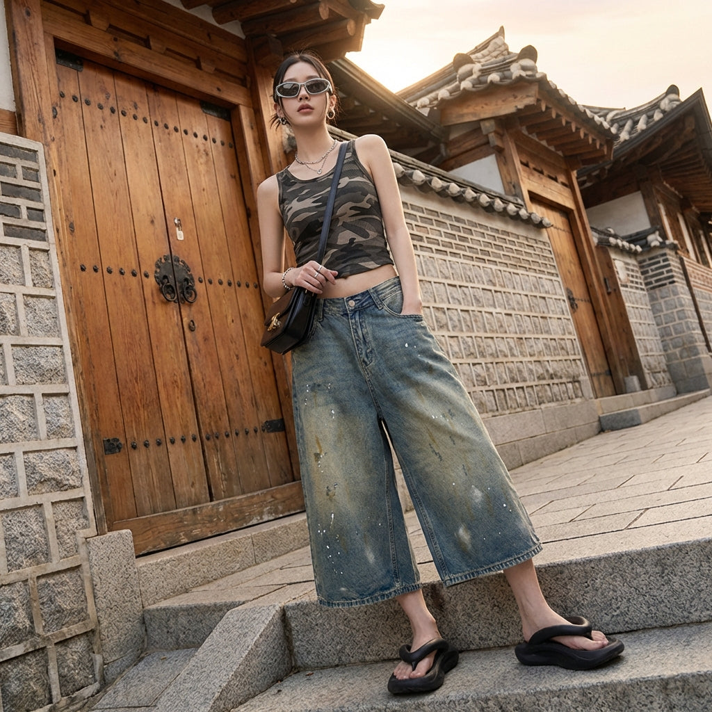 हमारे चौड़े लेग वाले डेनिम पैंट के साथ अपनी शैली को व्यक्त करें, जो अपनी अनूठी धुलाई और मूल "स्प्लैश" प्रभाव से प्रतिष्ठित है। आराम और प्रवृत्ति के लिए डिज़ाइन किया गया, यह जीन आपके स्ट्रीटवियर आउटफिट में एक साहसी स्पर्श जोड़ता है! ✨