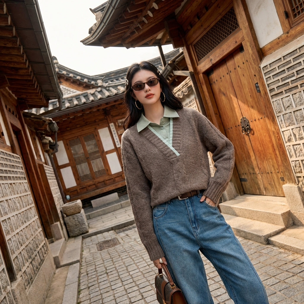 • शैली: कोरियाई फैशन, विंटेज, प्रेपी, ट्रेंडी। यह स्वेटर समकालीन साहस के स्पर्श के साथ कालातीत आकर्षण का प्रतीक है, जो आकस्मिक या अधिक औपचारिक शैली के लिए एकदम सही है।