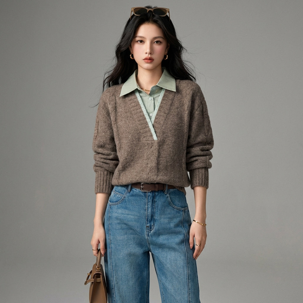हमारे पोलो कॉलर वाले "नकली दो-टुकड़ा" स्वेटर के साथ एक रेट्रो ठाठ लुक अपनाएं, एक अनूठा टुकड़ा जो लालित्य और आराम को जोड़ता है। इसका दो-टोन डिज़ाइन आपकी अलमारी में एक विंटेज और आधुनिक स्पर्श लाता है! ✨