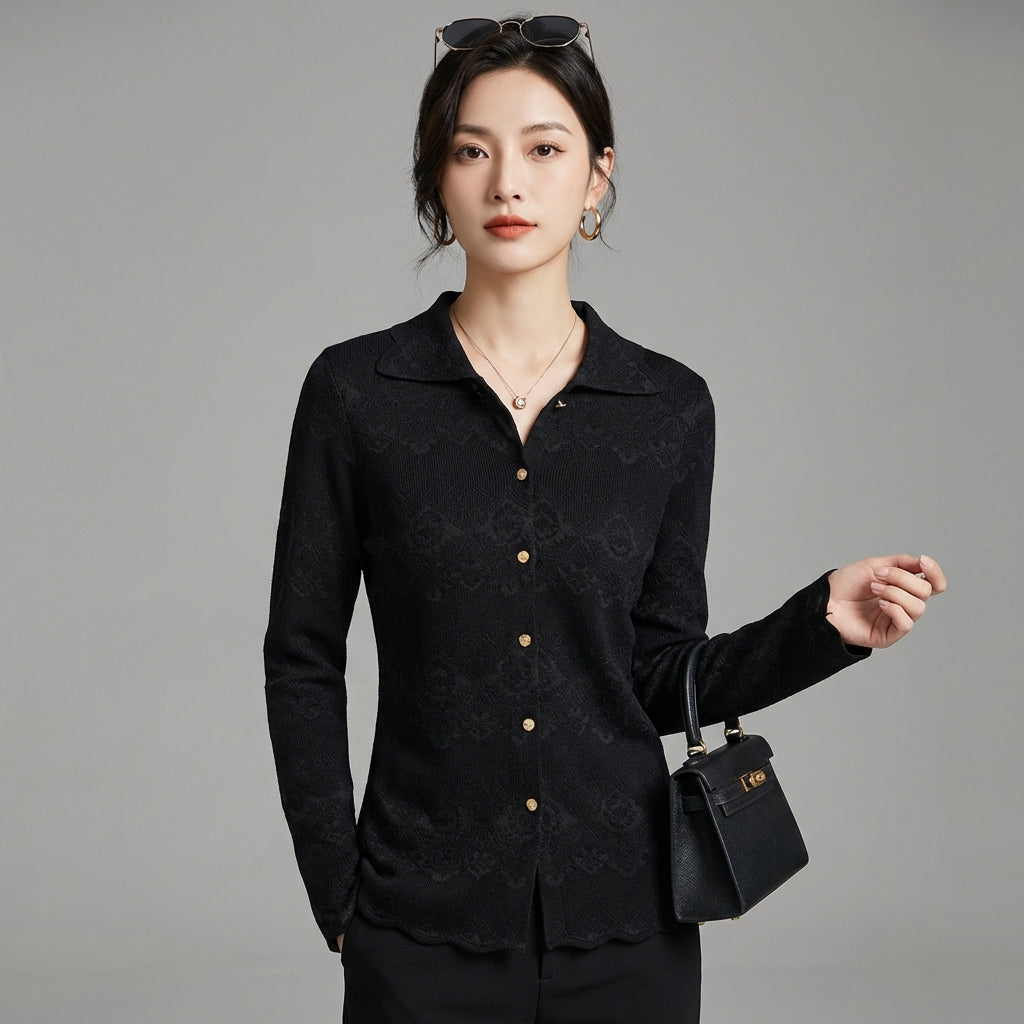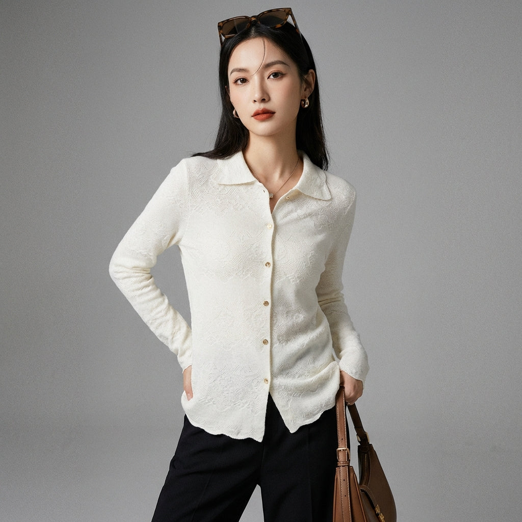 हमारे निटेड कार्डिगन के साथ सूक्ष्म लालित्य को अपनाएं, जिसमें एक परिष्कृत शर्ट कॉलर और लेस ट्रिम्स हैं। इसकी स्लिम फिट कटिंग आकृति को निखारती है, जो रोज़मर्रा के ठाठ और पेशेवर लुक के लिए आदर्श है! 🌸