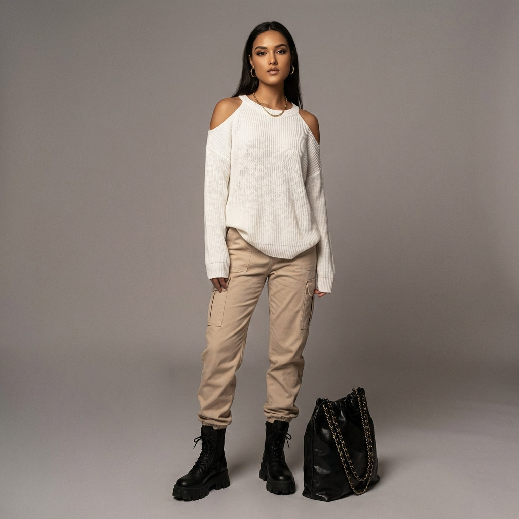 यह निट टॉप उन लोगों के लिए एकदम सही टुकड़ा है जो आराम, स्टाइल और मौलिकता को जोड़ना चाहते हैं। इसे आसानी से हाई-वेस्ट जींस, स्कर्ट या कार्गो पैंट के साथ अद्वितीय और ट्रेंडी आउटफिट बनाने के लिए जोड़ा जा सकता है।