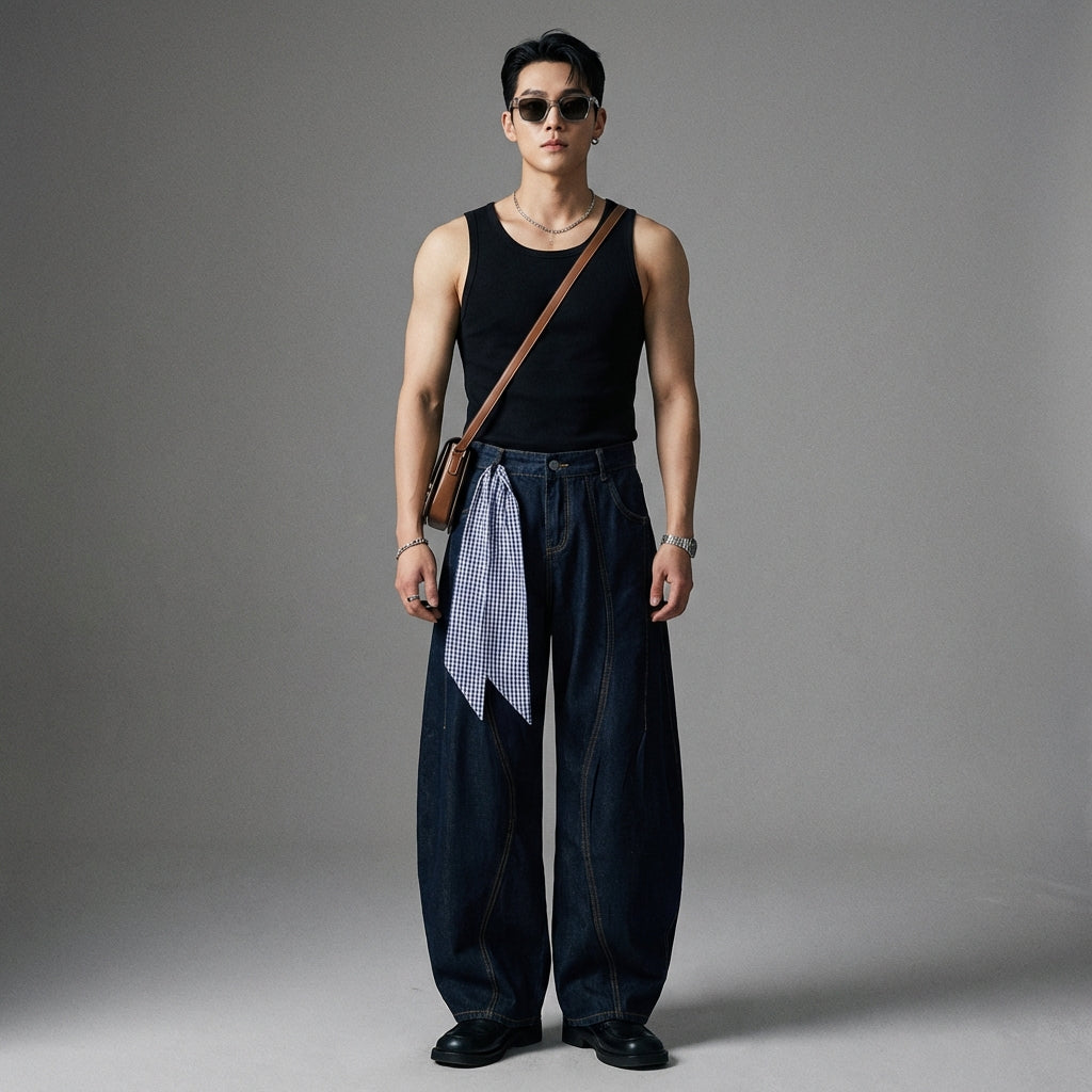 - Gaya: Streetwear, Kasual, Urban. Celana jeans ini mewujudkan semangat mode Korea kasual, sempurna untuk tampilan modern.