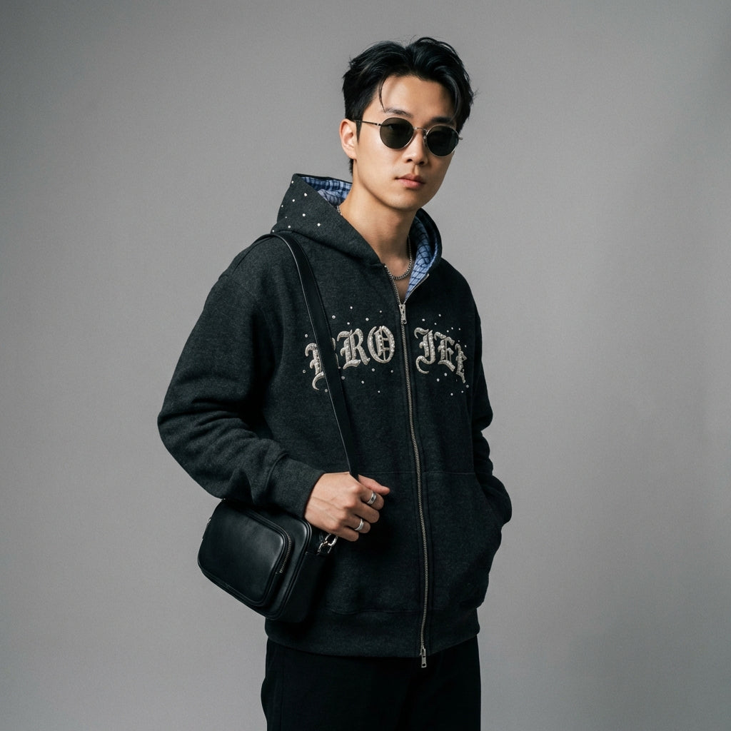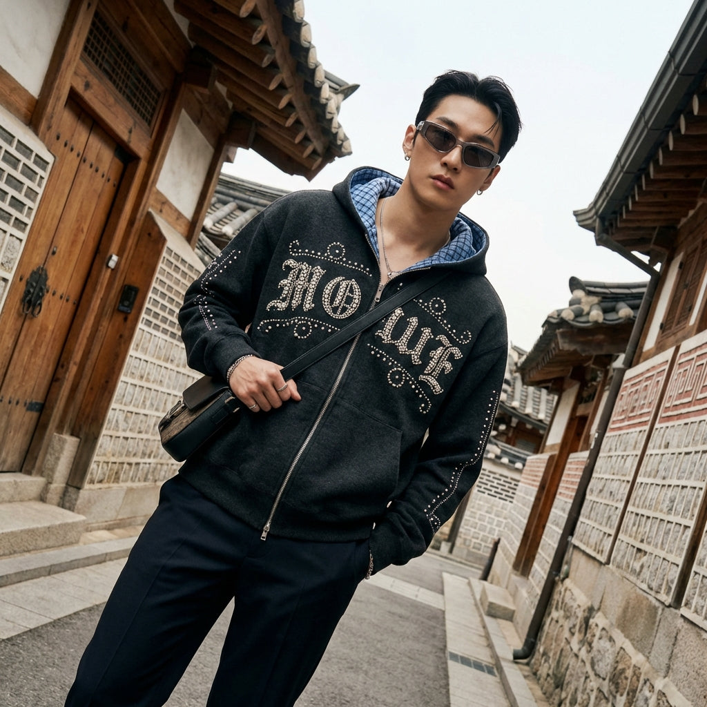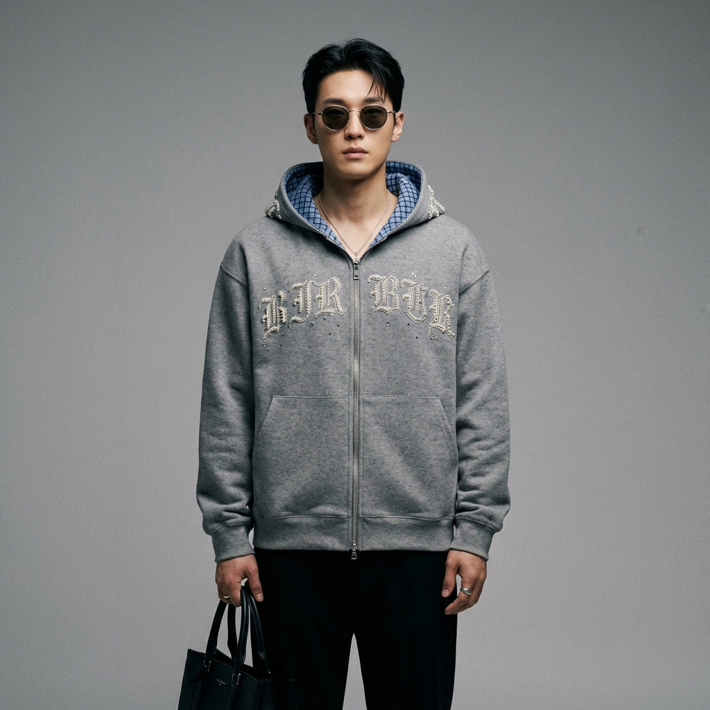 Tampil kasual dan trendi dengan hoodie ritsleting kami. Dihiasi dengan bordir huruf dan mutiara, pakaian uniseks ini menawarkan potongan longgar untuk kenyamanan optimal. Sempurna untuk gaya streetwear yang tegas! ✨