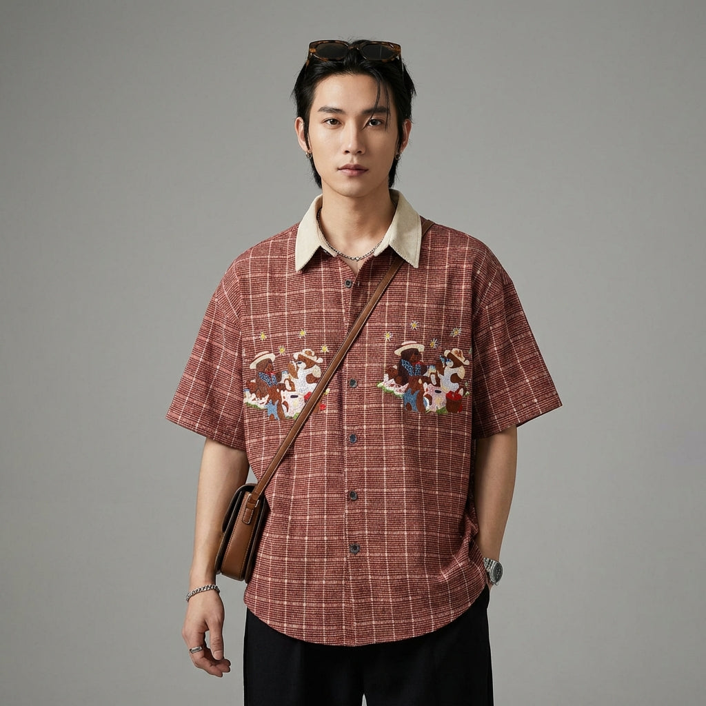 Tampil kasual dan trendi dengan kemeja kotak-kotak kami, dihiasi dengan bordiran beruang yang halus. Potongan longgar dan gaya retro Amerika menjadikannya pakaian serbaguna, sempurna untuk segala kesempatan. Ideal untuk gaya modern dan nyaman! 🐻
