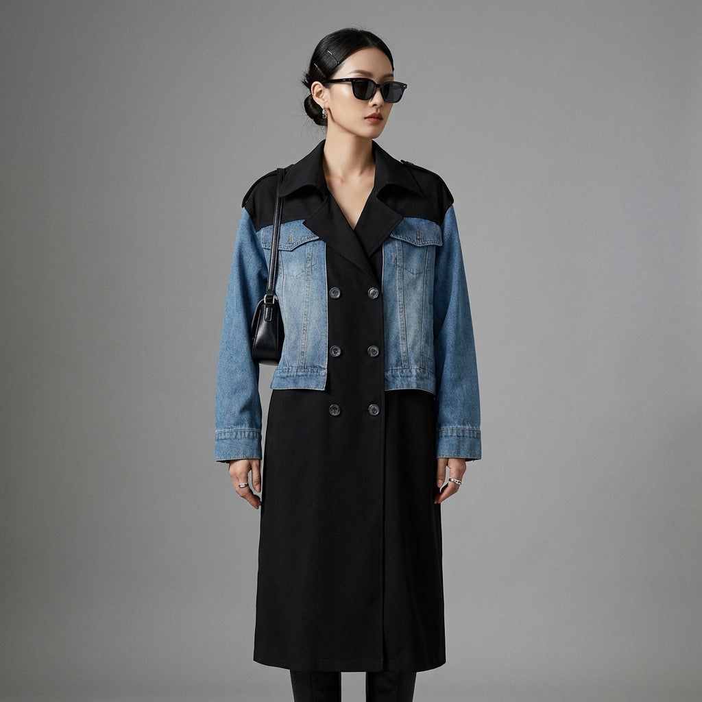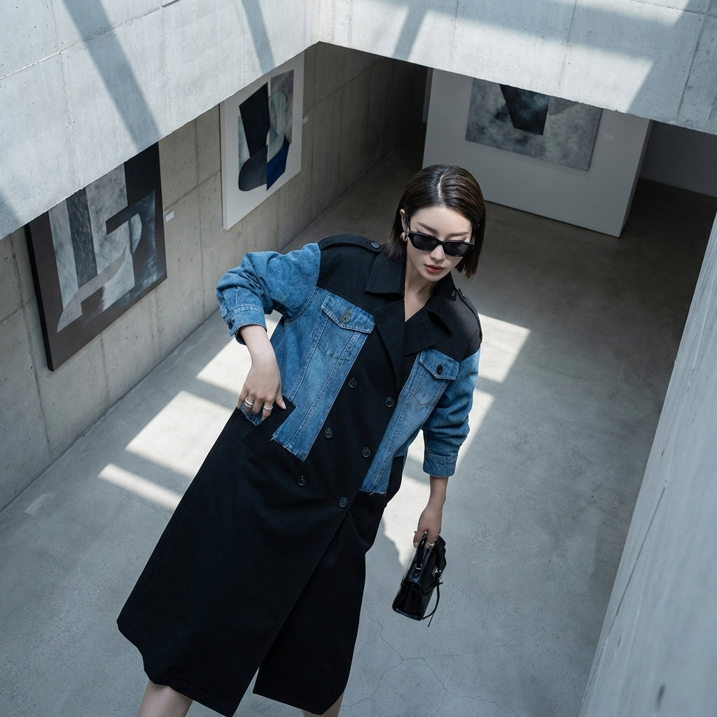 Veste longue oversize en denim femme - Mode coréenne