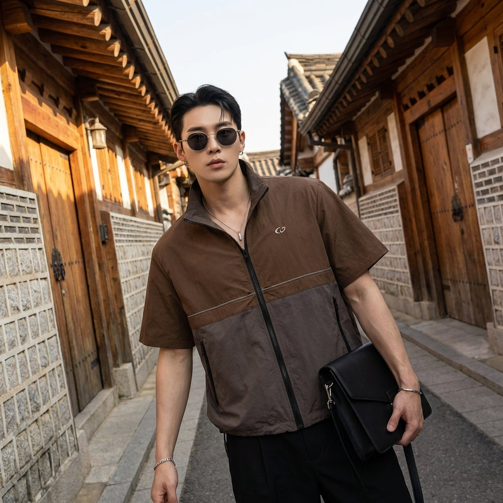 • Gaya: Streetwear, Kasual, K-fashion. Kemeja ini mewujudkan semangat mode urban Korea, dengan sentuhan orisinalitas berkat motif garis-garisnya.