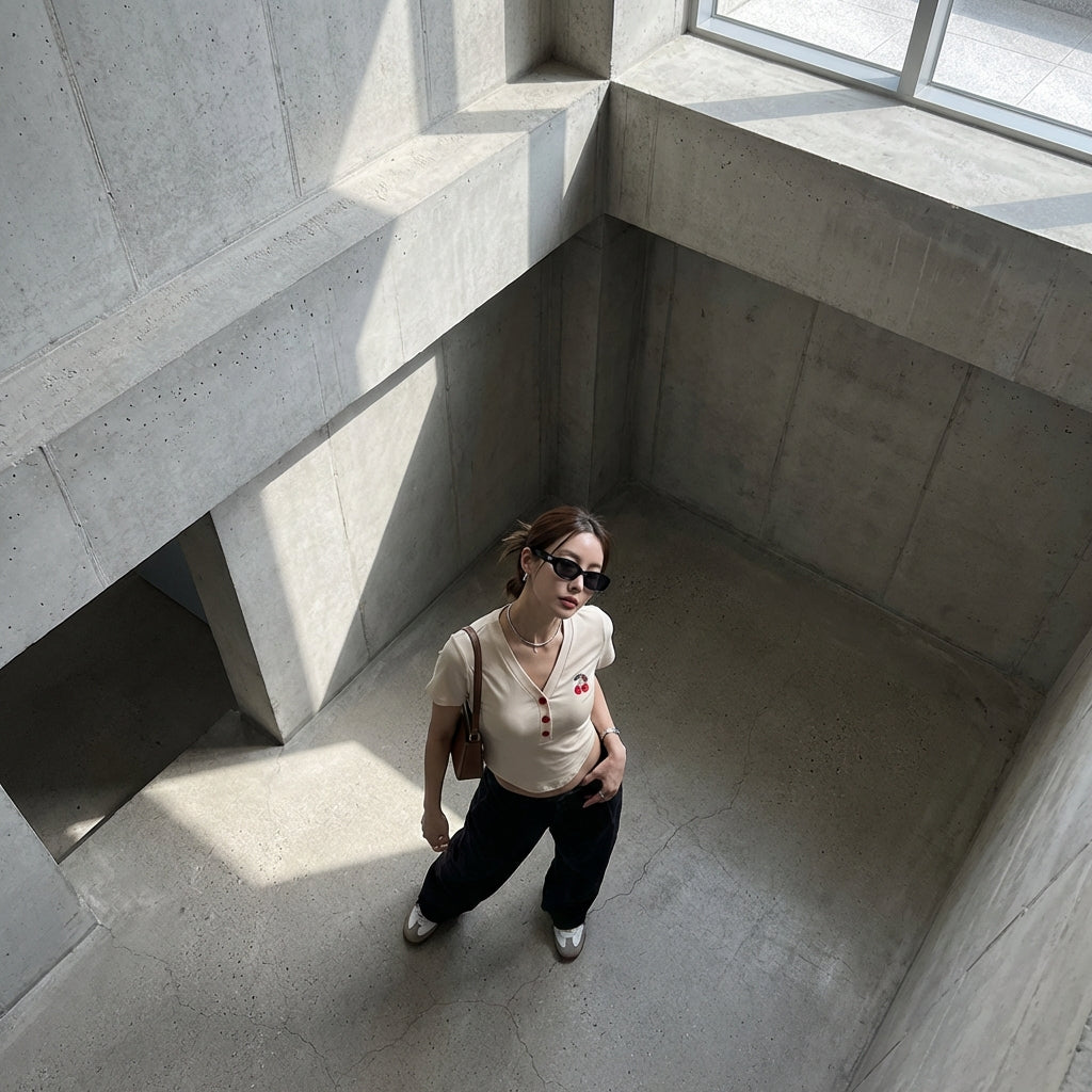 - Gaya: Mode Korea, Kasual Urban, Trendi. Kaus ini mewujudkan semangat muda dan segar dari K-fashion, ideal untuk gaya modern.