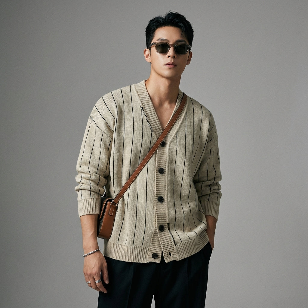 - Gaya: Streetwear, Kasual, Mode Korea. Kardigan ini mencerminkan estetika urban dan modern, terinspirasi oleh tren K-fashion terbaru.