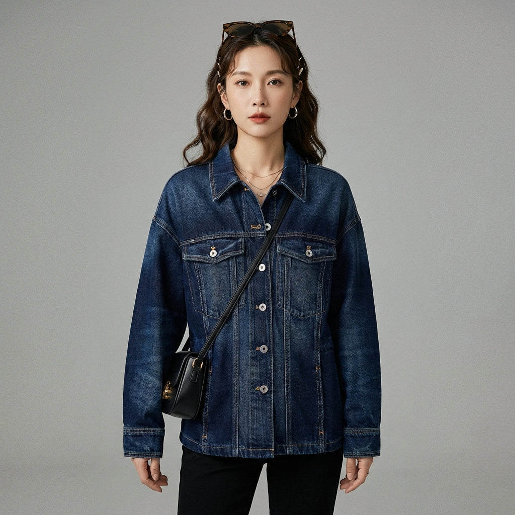 - Stagione: Primavera, Estate, Autunno. Il suo materiale in denim la rende ideale per le mezze stagioni, offrendo una leggera protezione pur rimanendo traspirante.