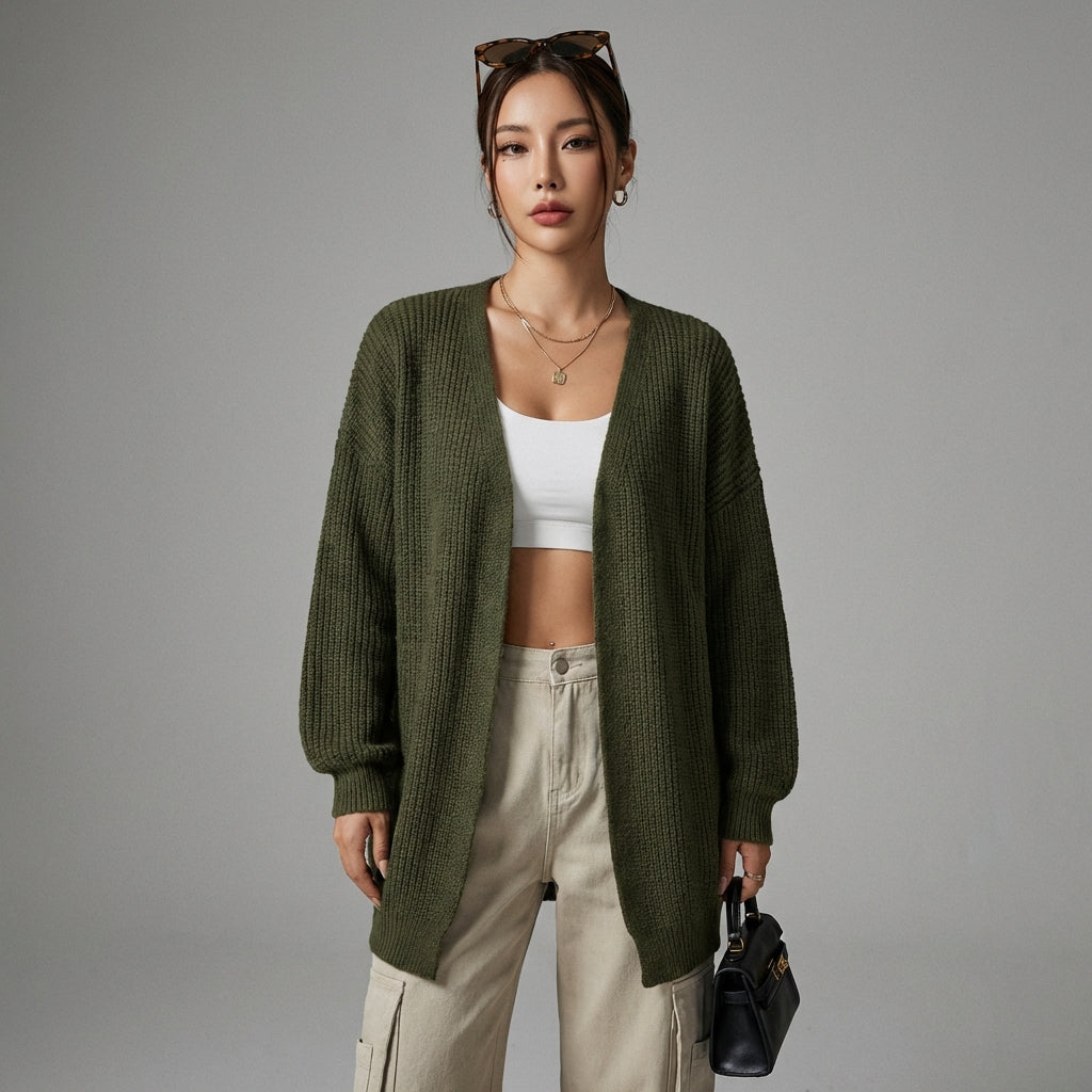 - Stile: Minimalista, Casual, K-fashion. Questo cardigan incarna l'eleganza semplice e la versatilità della moda coreana, perfetto per un look quotidiano o più elaborato.