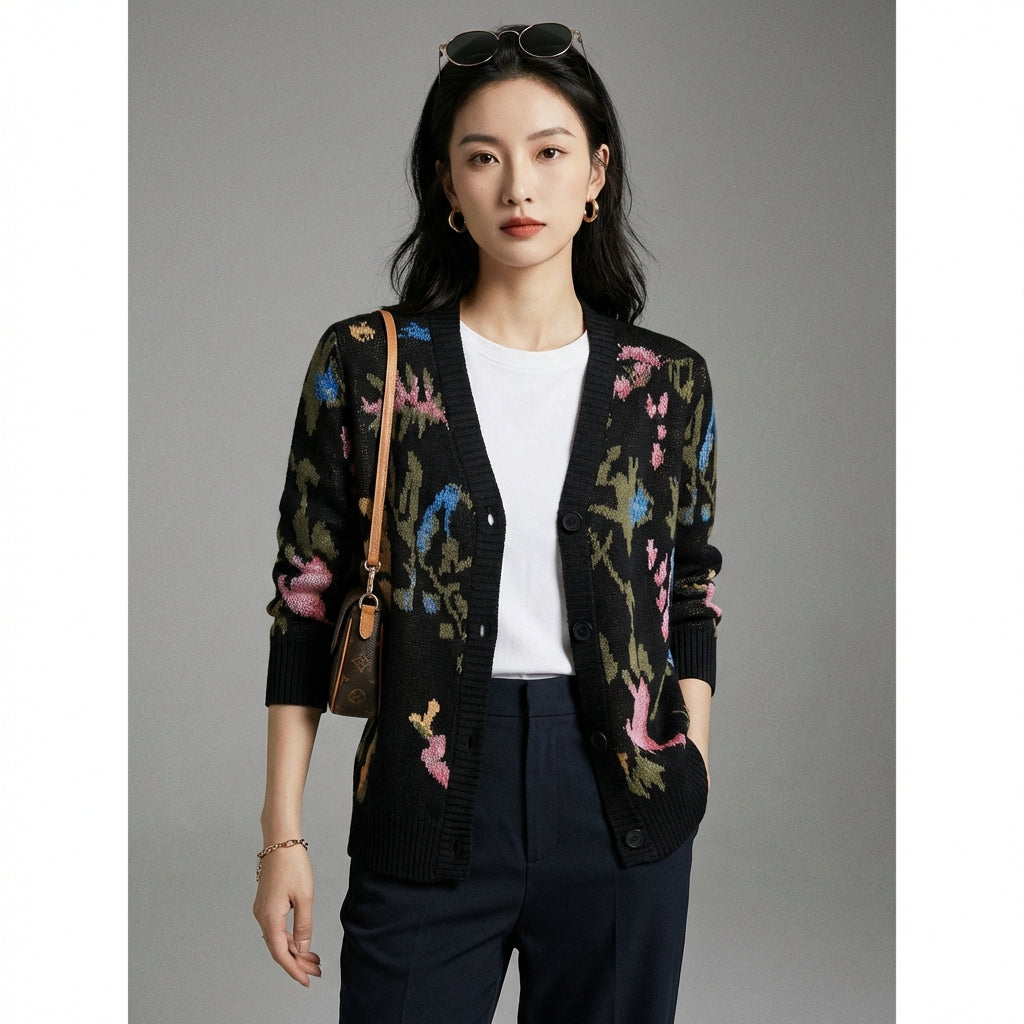 Adotta un look primaverile e delicato con il nostro cardigan lavorato a maglia con motivi floreali. Il suo scollo a V e il taglio abbottonato lo rendono un capo affascinante e facile da abbinare, perfetto per un tocco di dolcezza nella tua quotidianità! 🌸