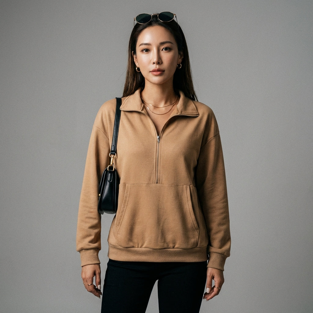 Adotta un look casual e di tendenza con la nostra felpa con colletto a revers e chiusura a cerniera. Dotata di pratiche tasche, combina stile e funzionalità per i tuoi outfit quotidiani. Perfetta per un look moderno e confortevole! ✨