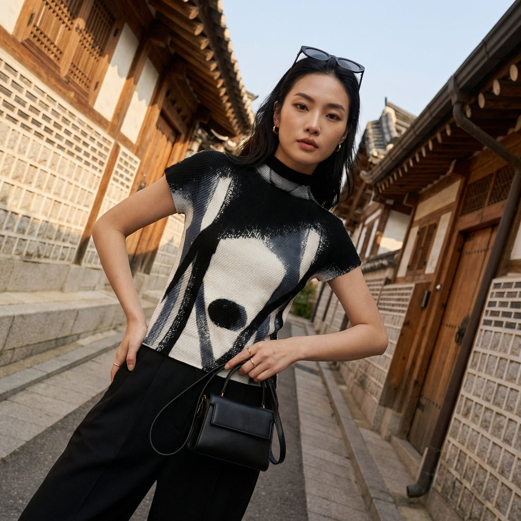 - Stile: Urbano, K-fashion, Tendenza. Questa t-shirt incarna lo spirito della moda urbana coreana con un tocco moderno e dinamico.