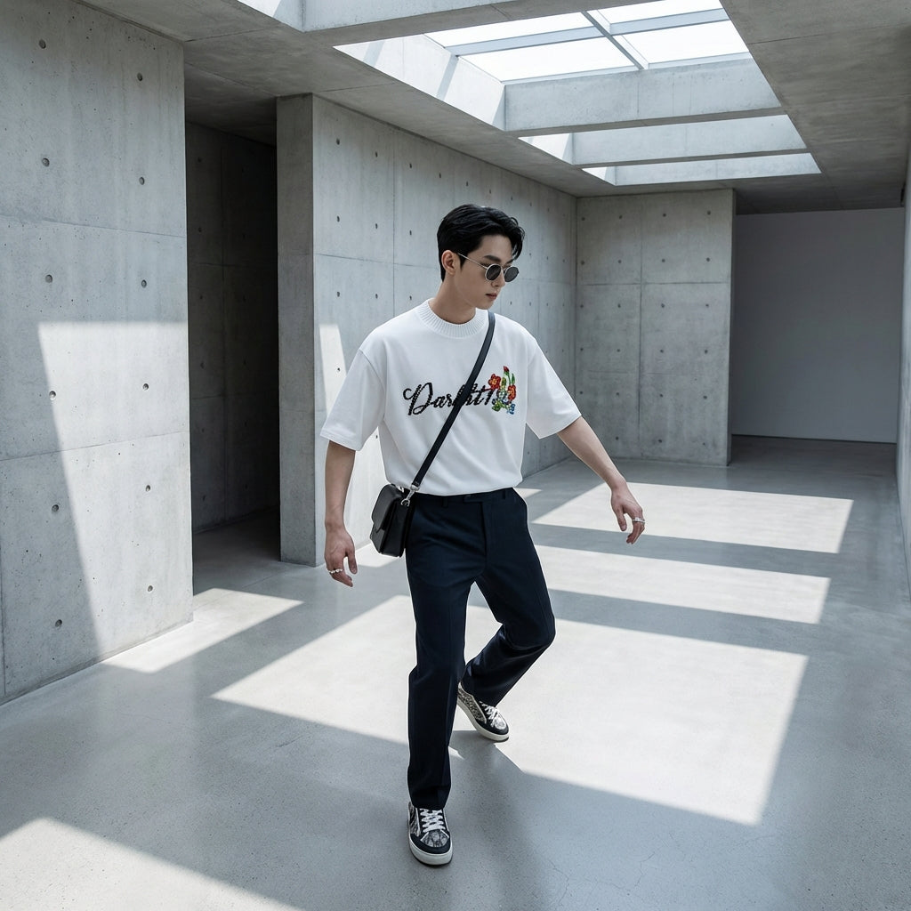 • Stile: Streetwear, K-fashion, Tendenza. Questa T-shirt incarna lo spirito casual e moderno dello streetwear coreano, perfetta per un look urbano e attuale.