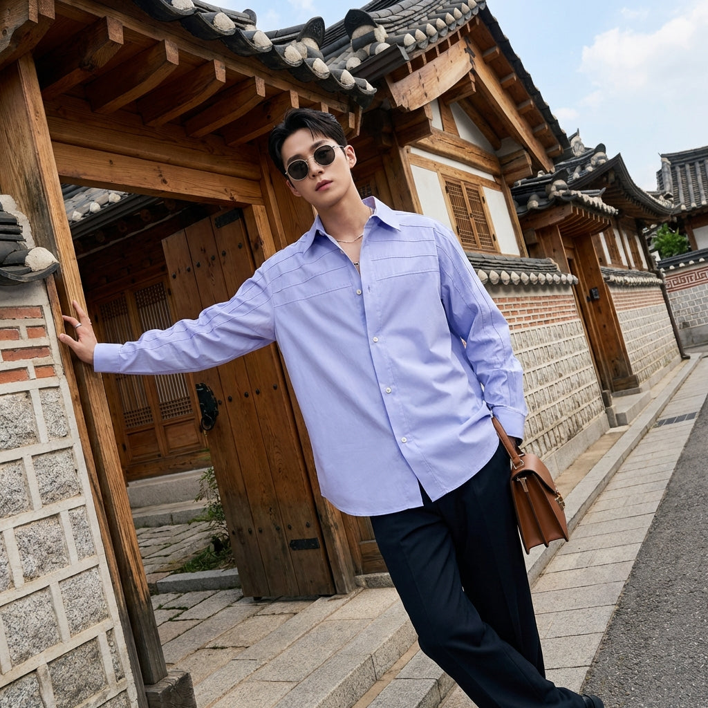 - Stile: K-fashion, Retrò, Casual, Oversize. Ispirata alla moda coreana, questa camicia combina uno stile retrò con un taglio moderno e ampio.