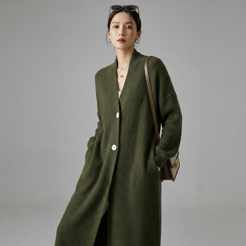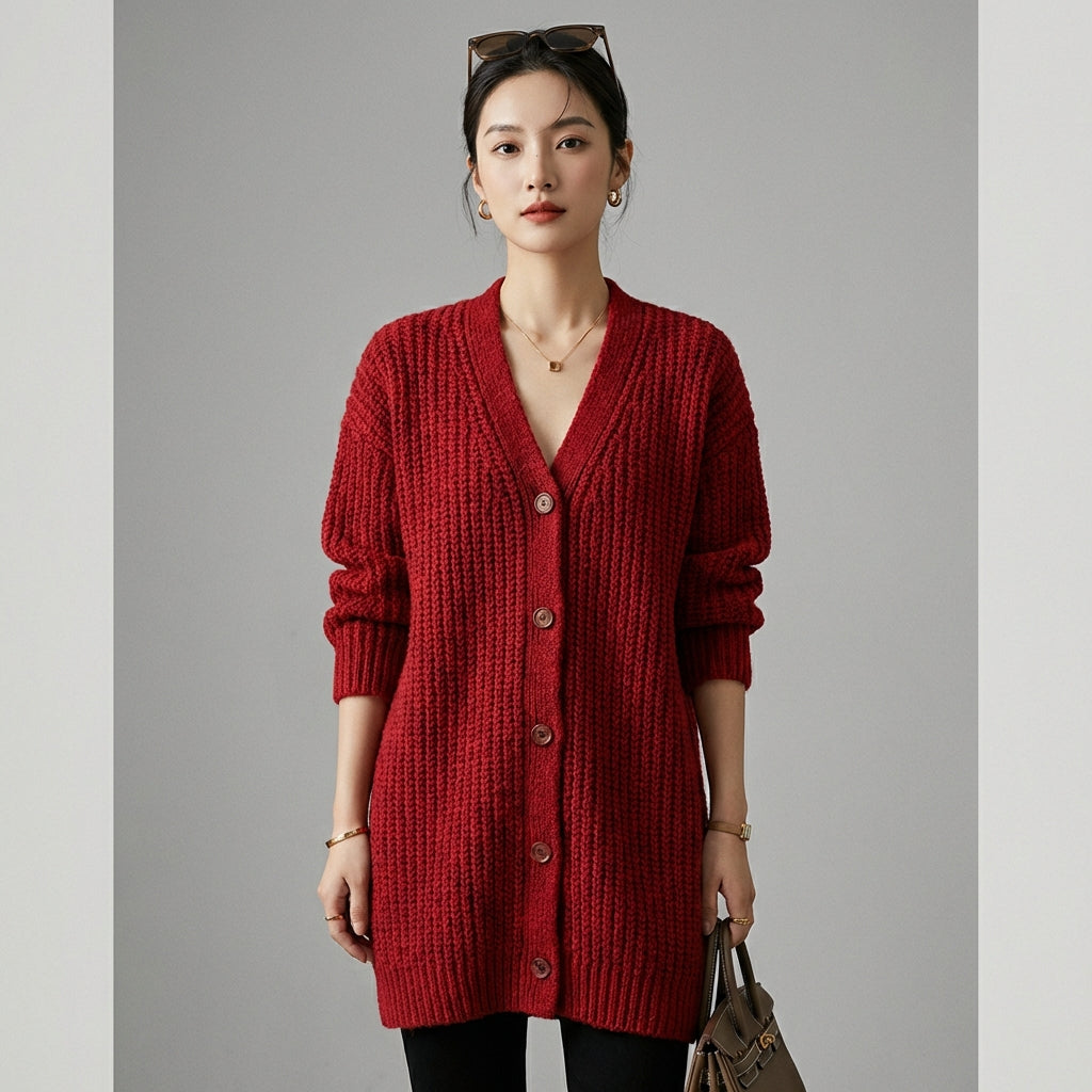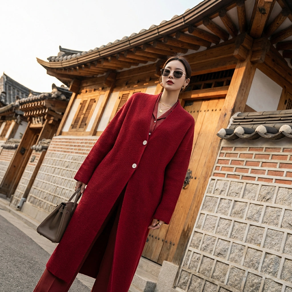 - Stile: Elegante, Minimalista, K-fashion. Questo cardigan incarna l'eleganza discreta e le linee pulite della moda coreana, perfetto per un look chic e di tendenza.
