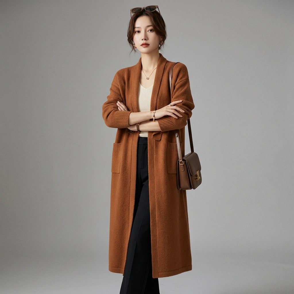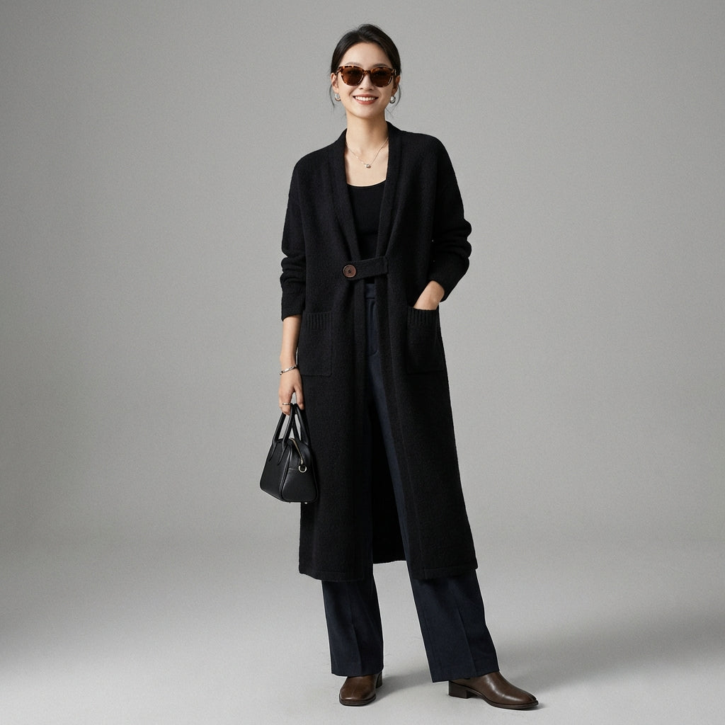 Abbraccia l'eleganza casual con il nostro cardigan lungo con scollo a V, perfetto per ogni occasione. Il suo design ampio e la chiusura con fibbia aggiungono un tocco di moderna raffinatezza al tuo guardaroba. Ideale per un look a strati chic e confortevole! ✨