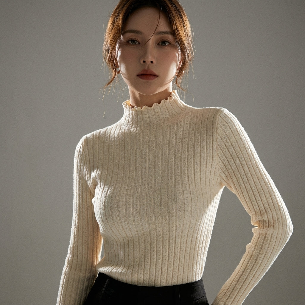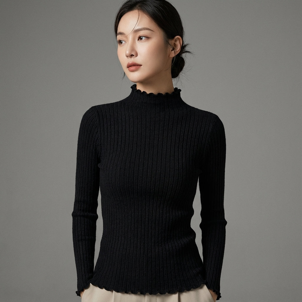 Scopri il nostro maglione coreano a collo alto, un capo essenziale per un look fresco e di tendenza. Con le sue delicate balze, aggiunge un tocco di morbidezza ed eleganza al tuo guardaroba. Perfetto per rimanere alla moda pur essendo comoda! ✨