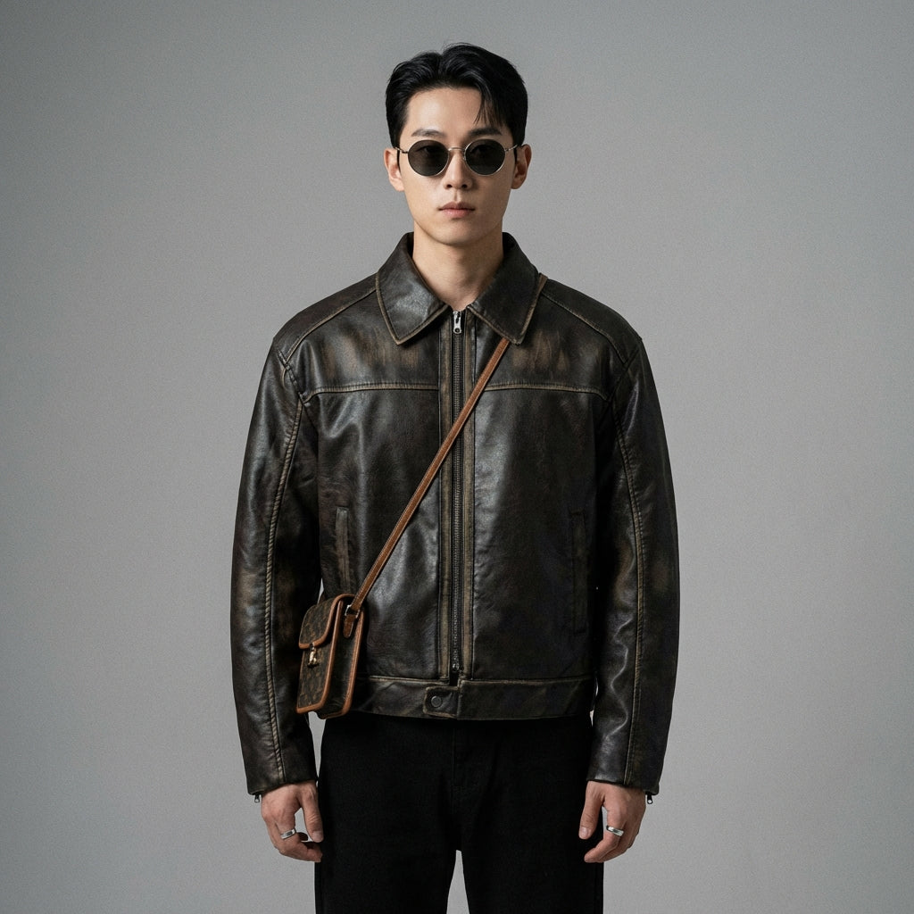 Afferma il tuo stile con la nostra giacca da moto destrutturata con effetto invecchiato, un capo forte che unisce audacia e tendenza. Perfetta per un look urbano e casual, diventerà presto un must-have del tuo guardaroba! 🏍️