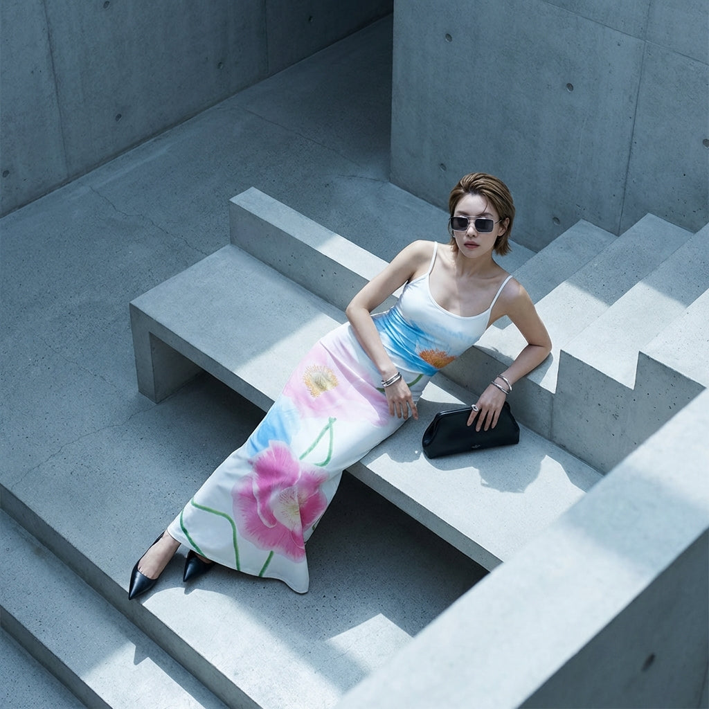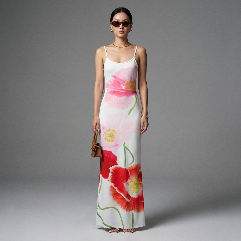 Esaltate la vostra silhouette con il nostro abito lungo a stampa floreale, caratterizzato da un elegante scollo a U e un'audace schiena scoperta. Il suo taglio aderente sottolinea la vita e si allarga in una fluida gonna a trapezio, offrendo un'allure raffinata e allo stesso tempo casual. Perfetto per le giornate di sole o le serate estive! 🌸